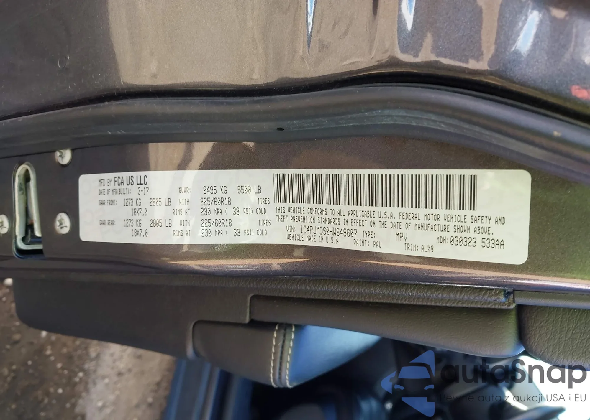 LOT: 43628721 VIN: 1C4PJMDS0HW648607