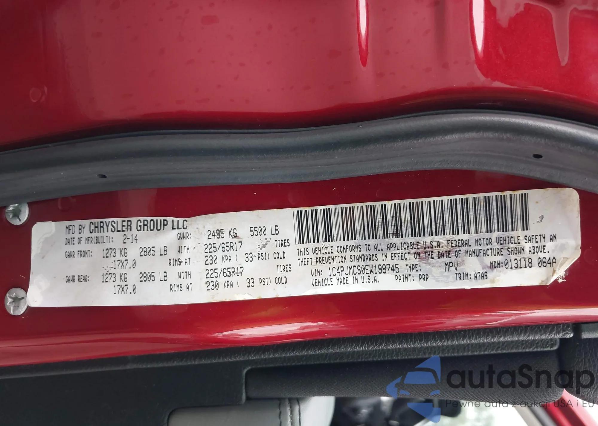 LOT: 43757794 VIN: 1C4PJMCS0EW198745