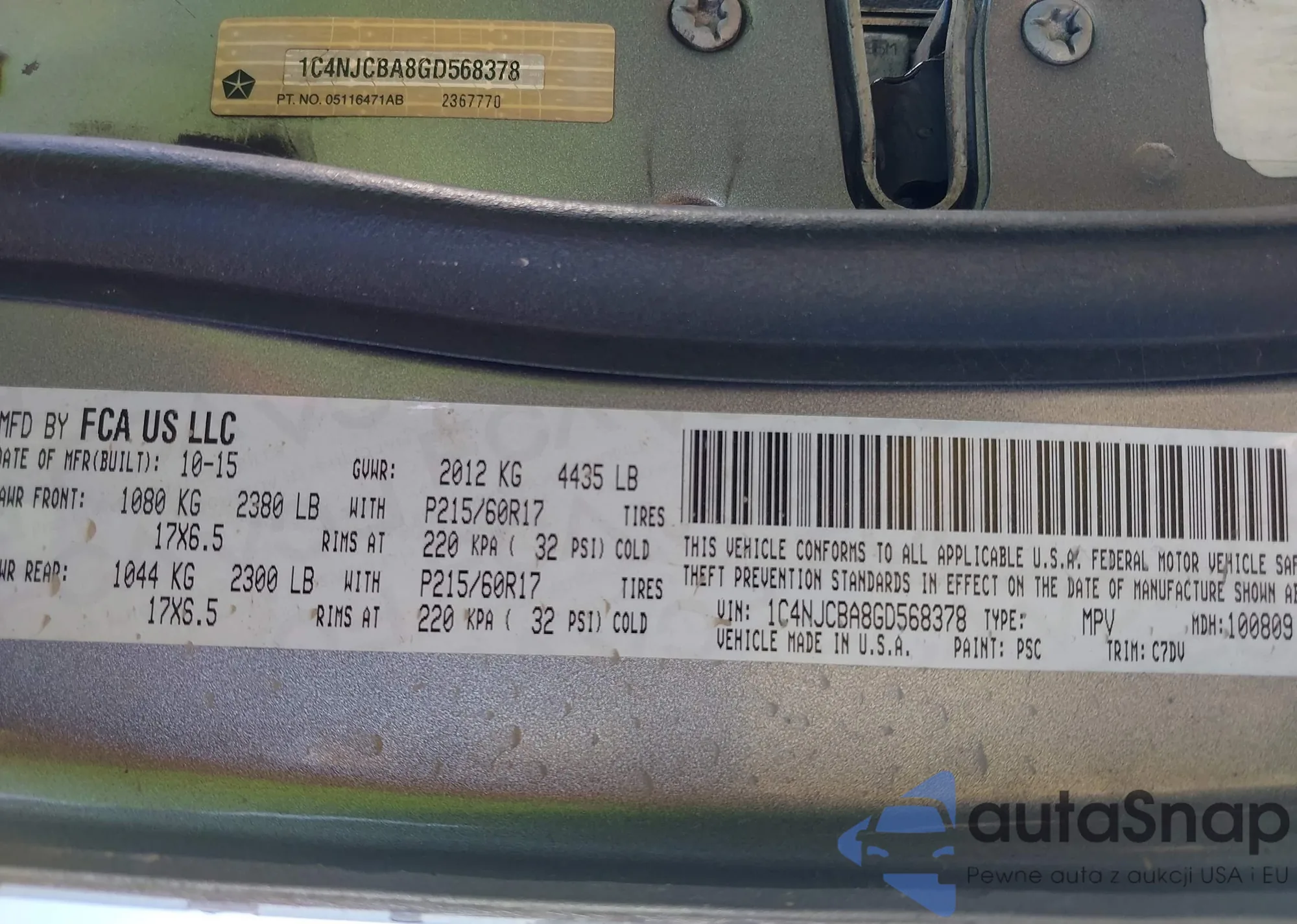 LOT: 40803670 VIN: 1C4NJCBA8GD568378