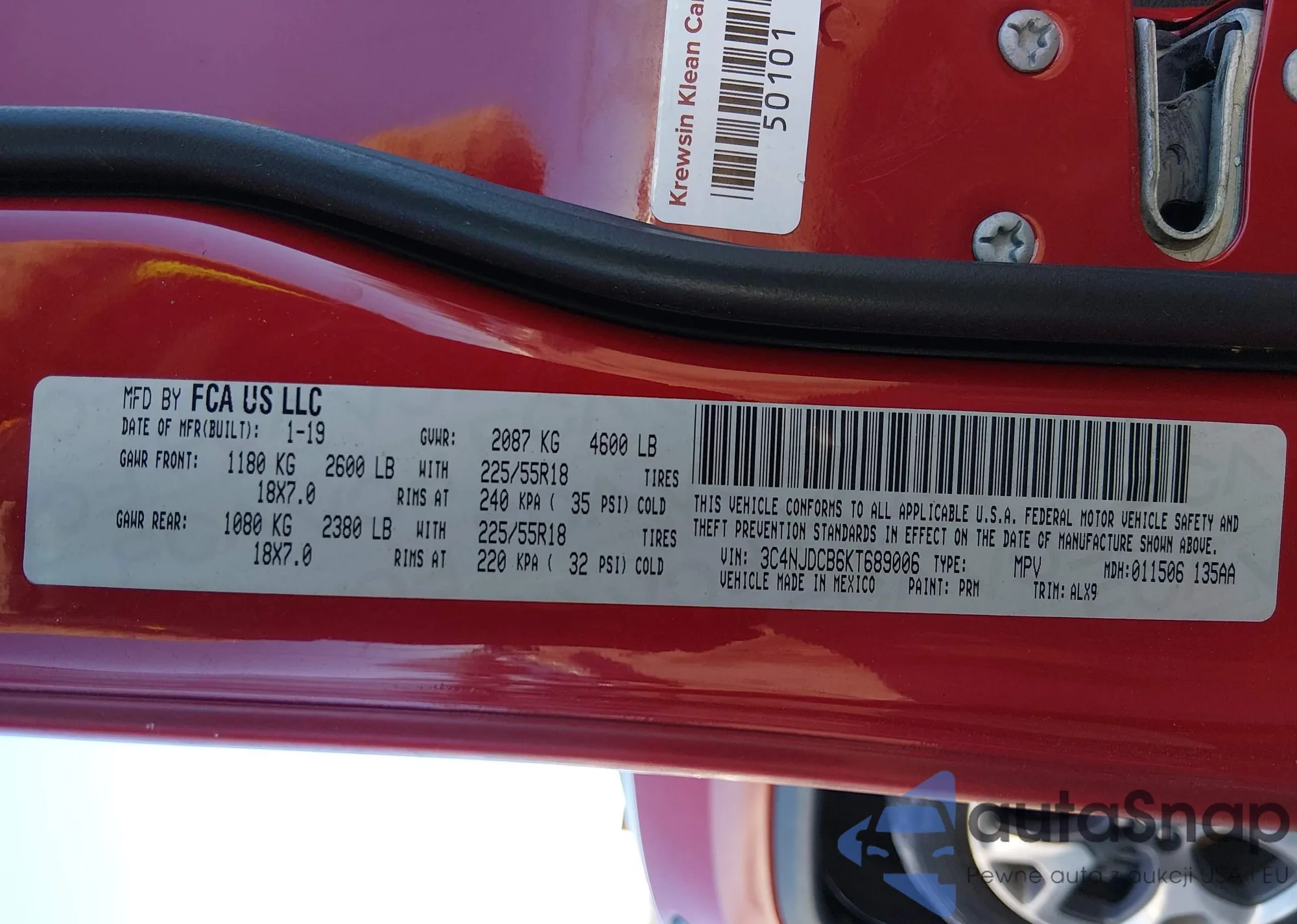 • VIN 3C4NJDCB6KT689006