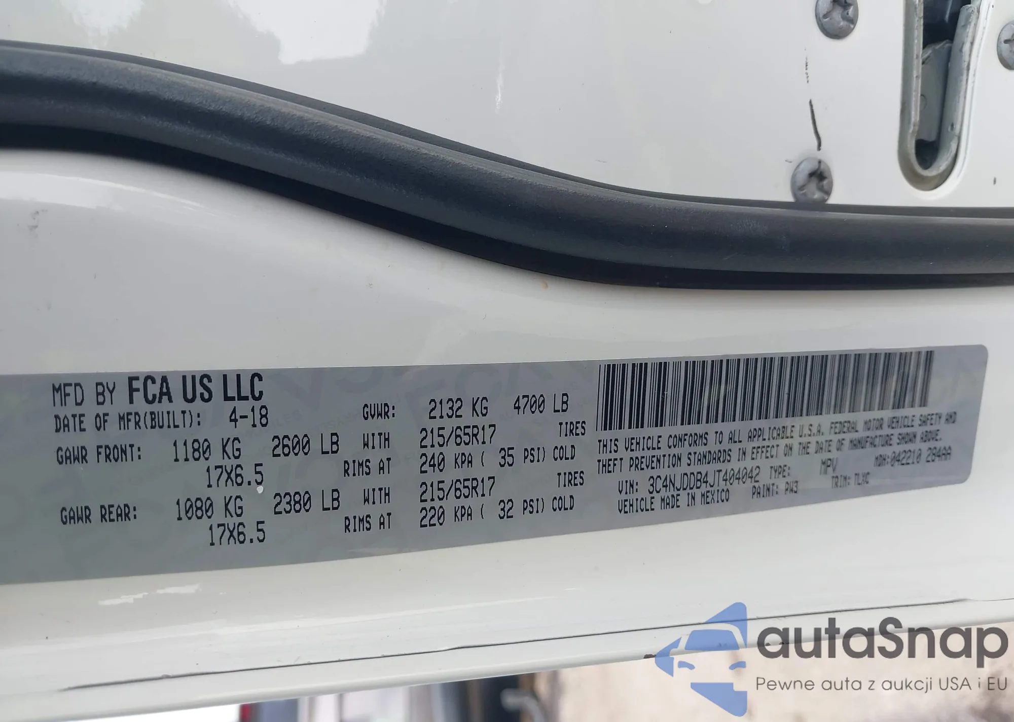 • VIN 3C4NJDDB4JT404042