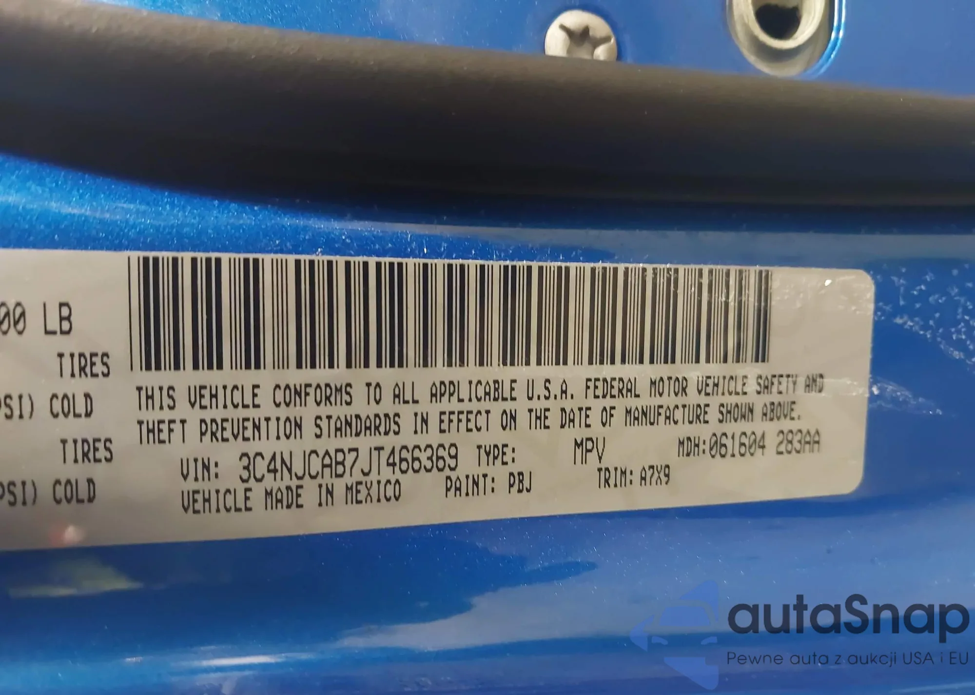 • VIN 3C4NJCAB7JT466369