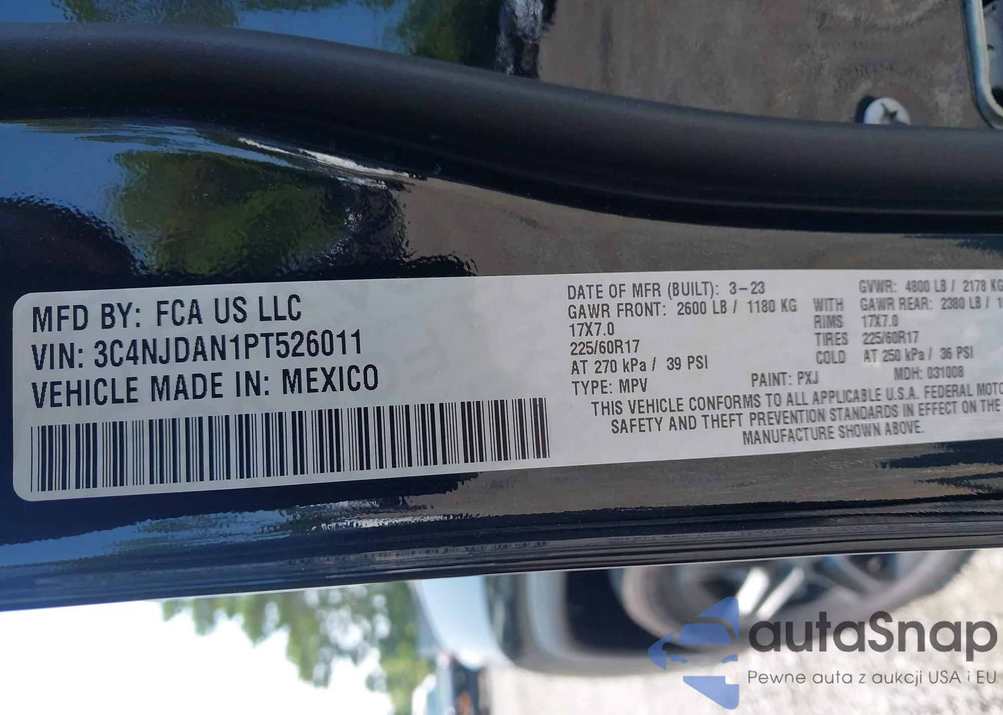 • VIN 3C4NJDAN1PT526011