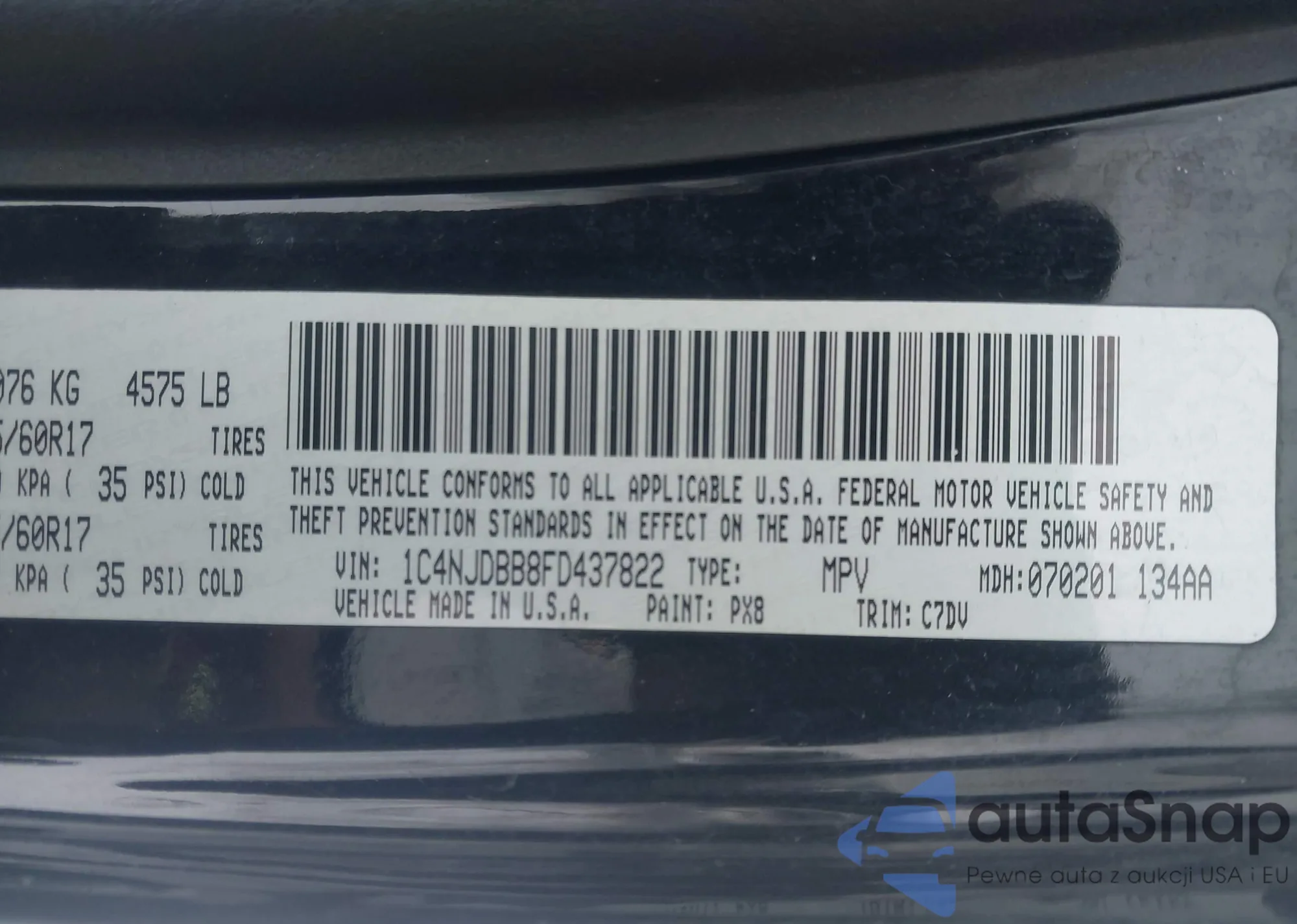 • VIN 1C4NJDBB8FD437822
