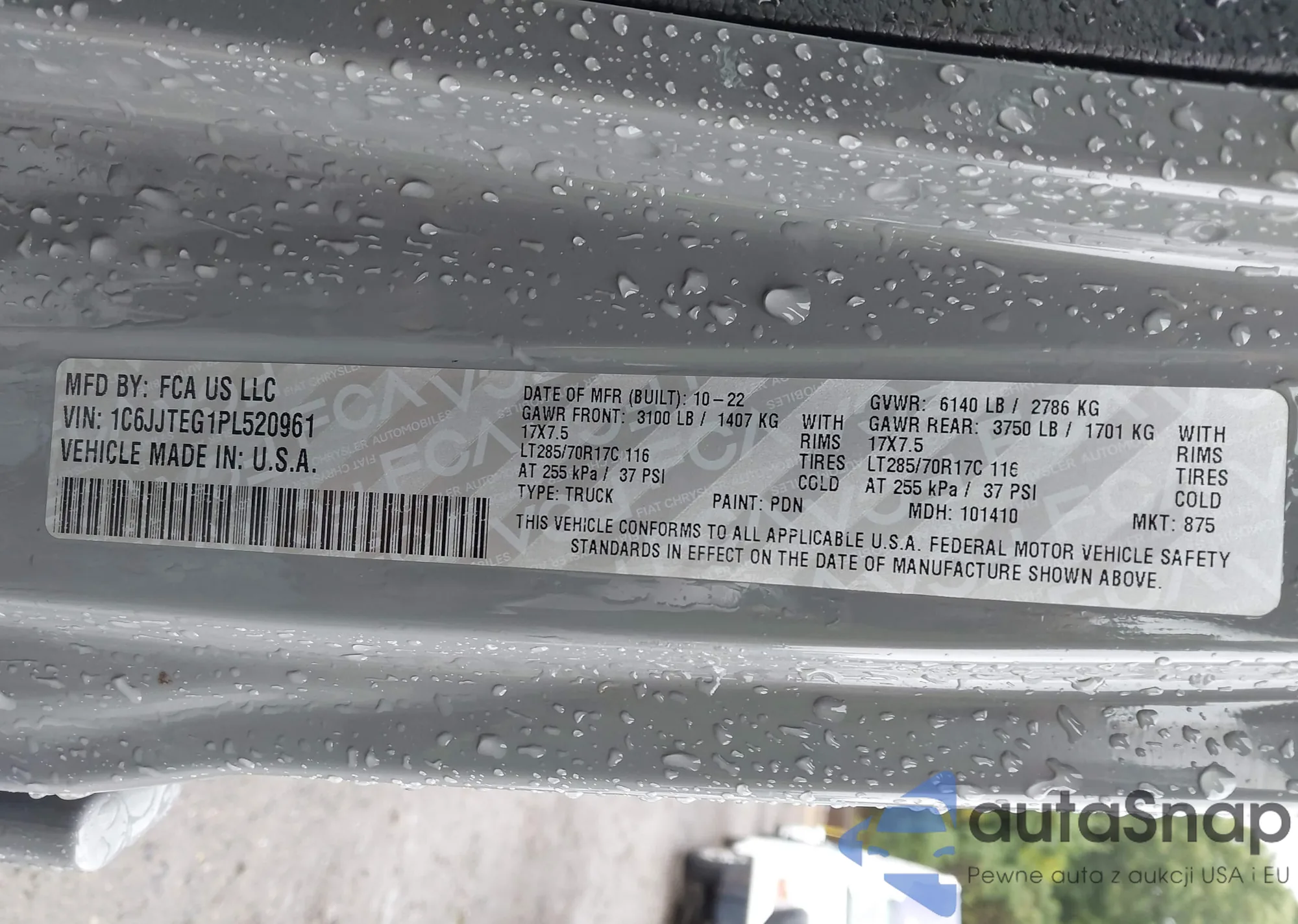• VIN 1C6JJTEG1PL520961