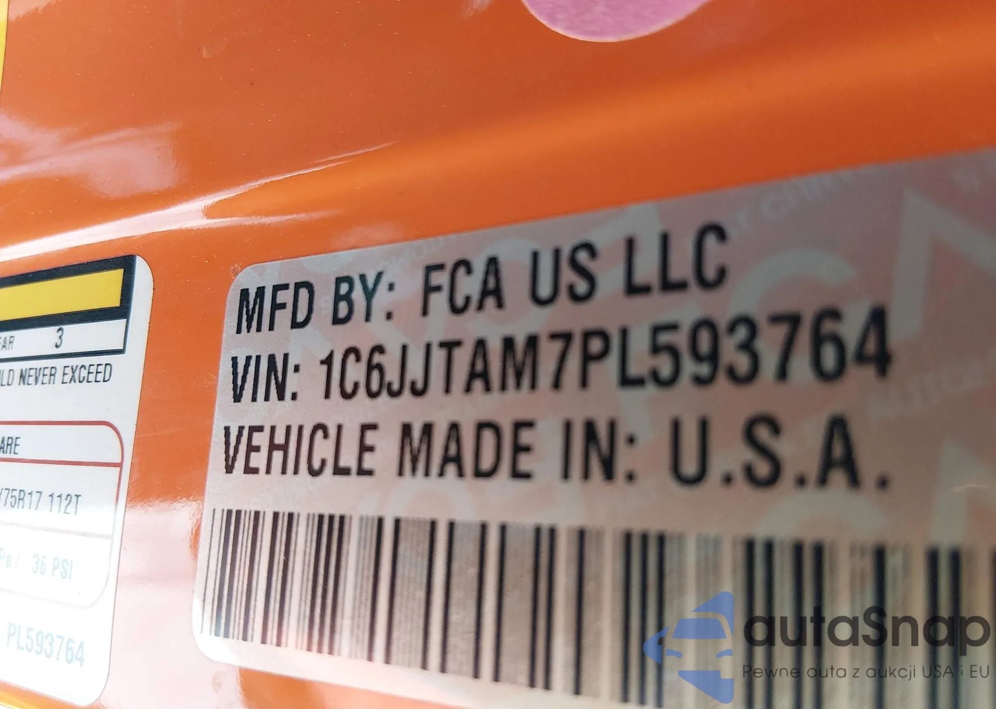 • VIN 1C6JJTAM7PL593764