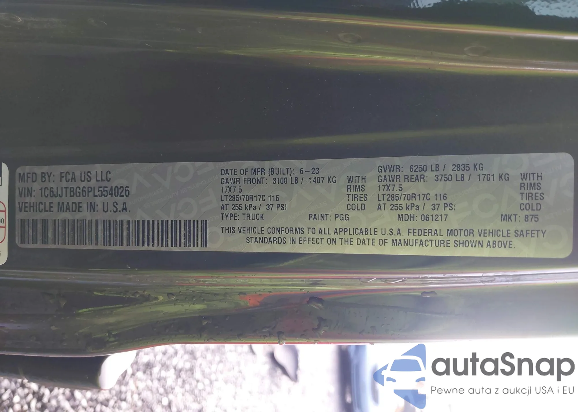 • VIN 1C6JJTBG6PL554026