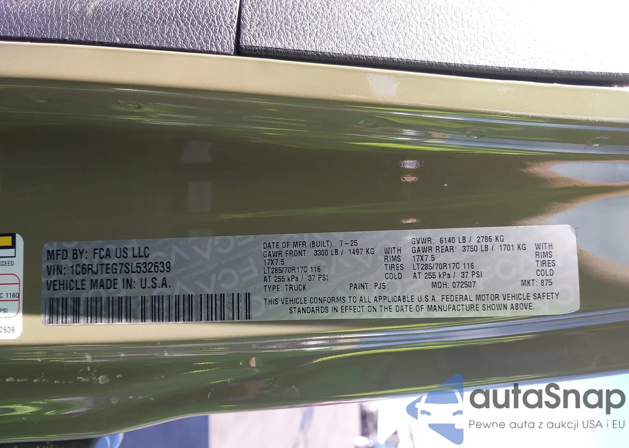 • VIN 1C6RJTEG7SL532639