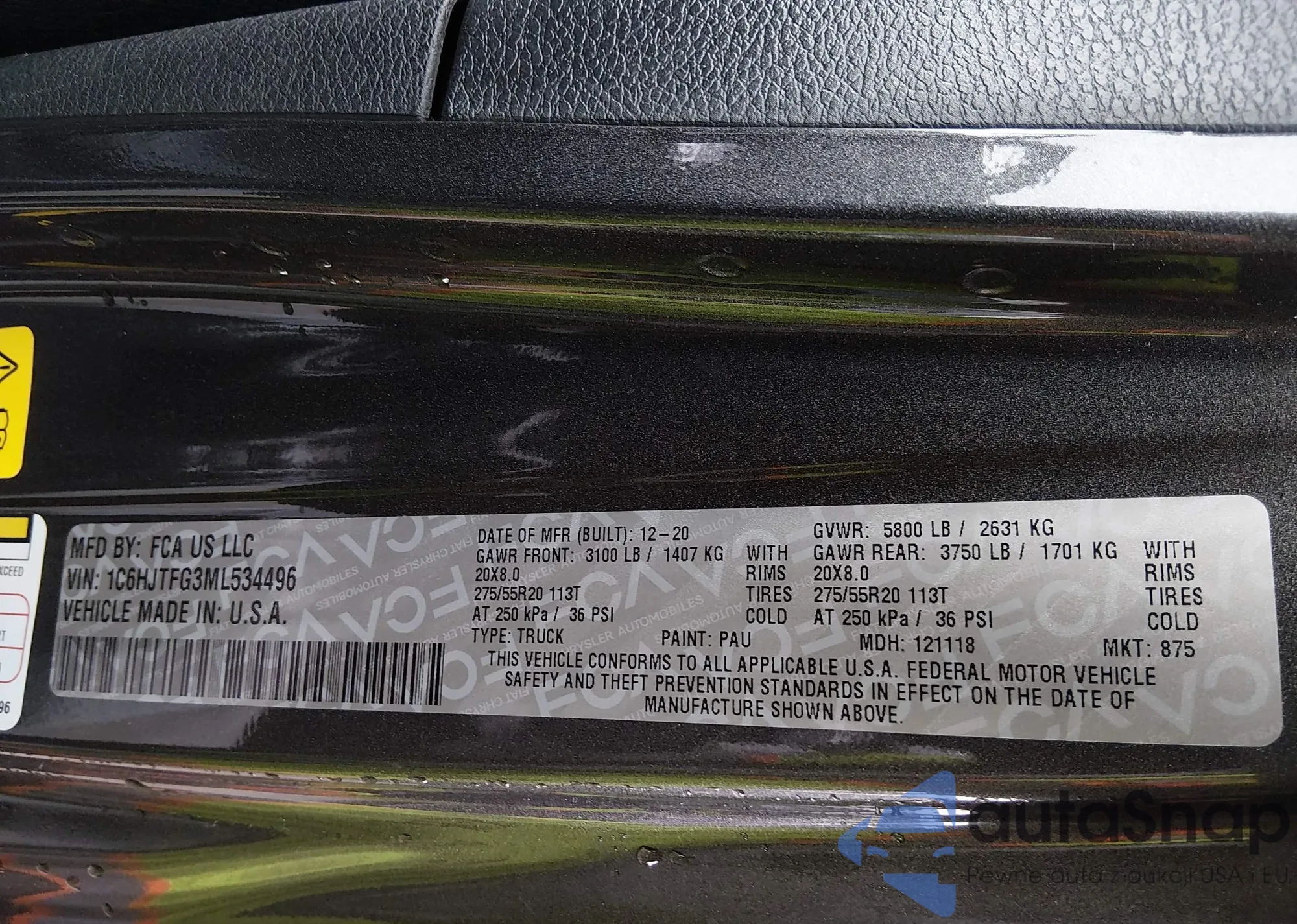 • VIN 1C6HJTFG3ML534496