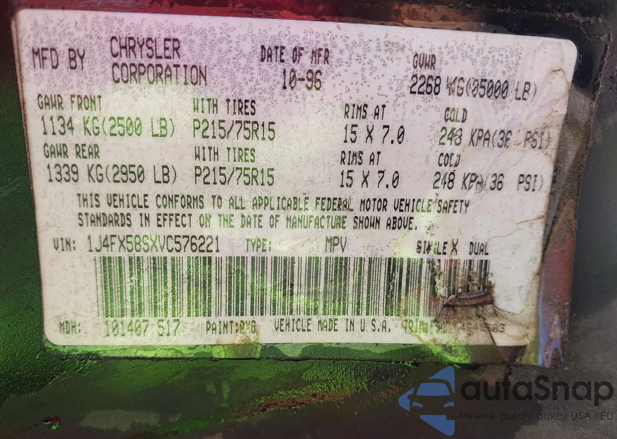 • VIN 1J4FX58SXVC576221