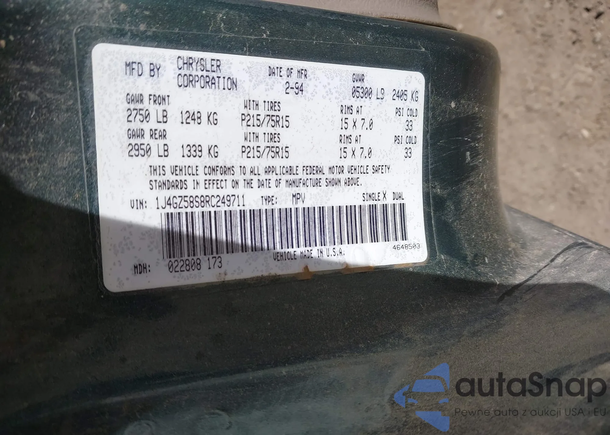 • VIN 1J4GZ58S8RC249711