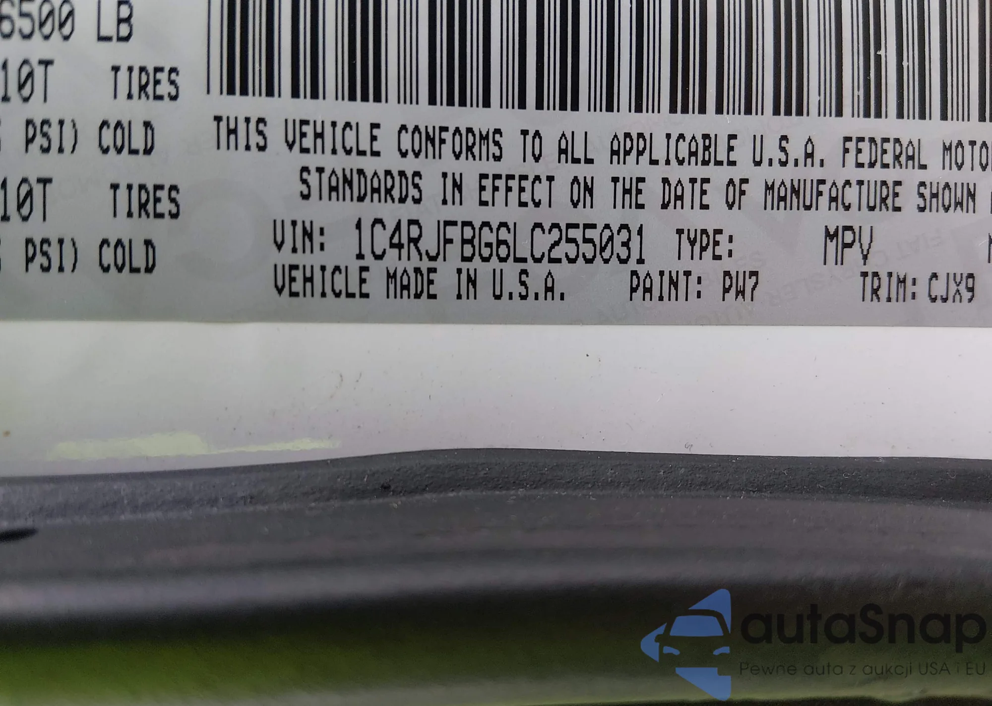• VIN 1C4RJFBG6LC255031