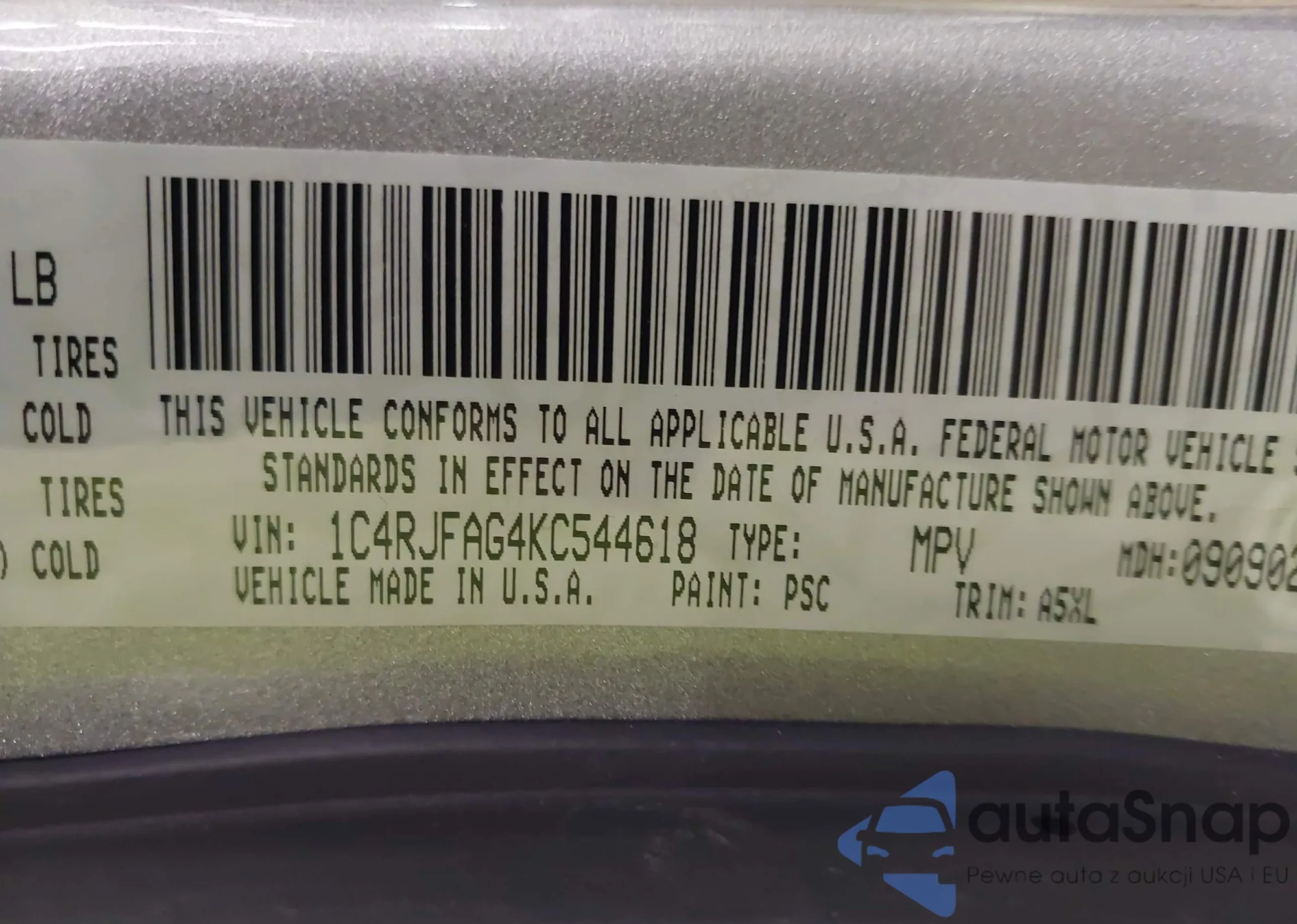 • VIN 1C4RJFAG4KC544618