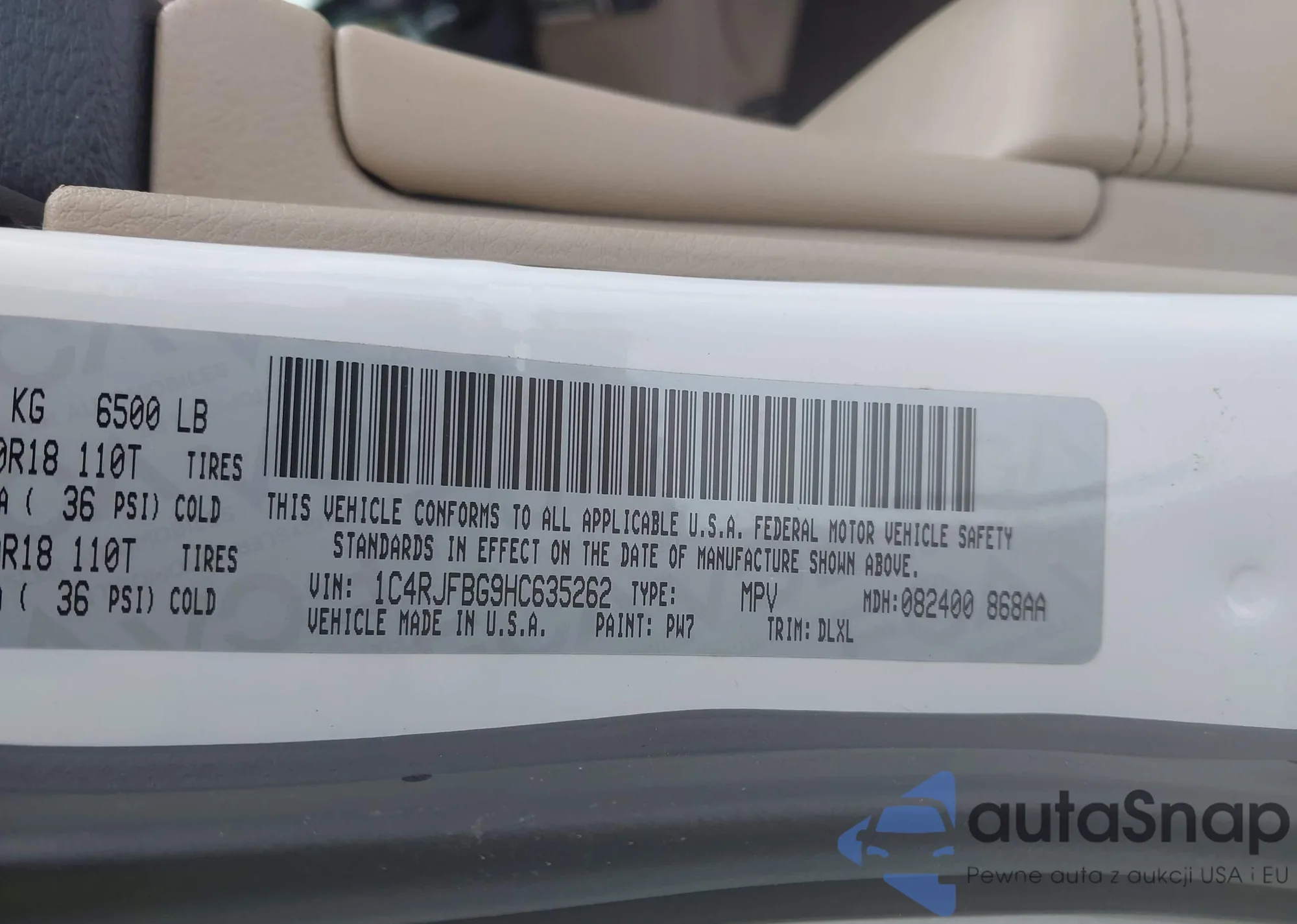 • VIN 1C4RJFBG9HC635262
