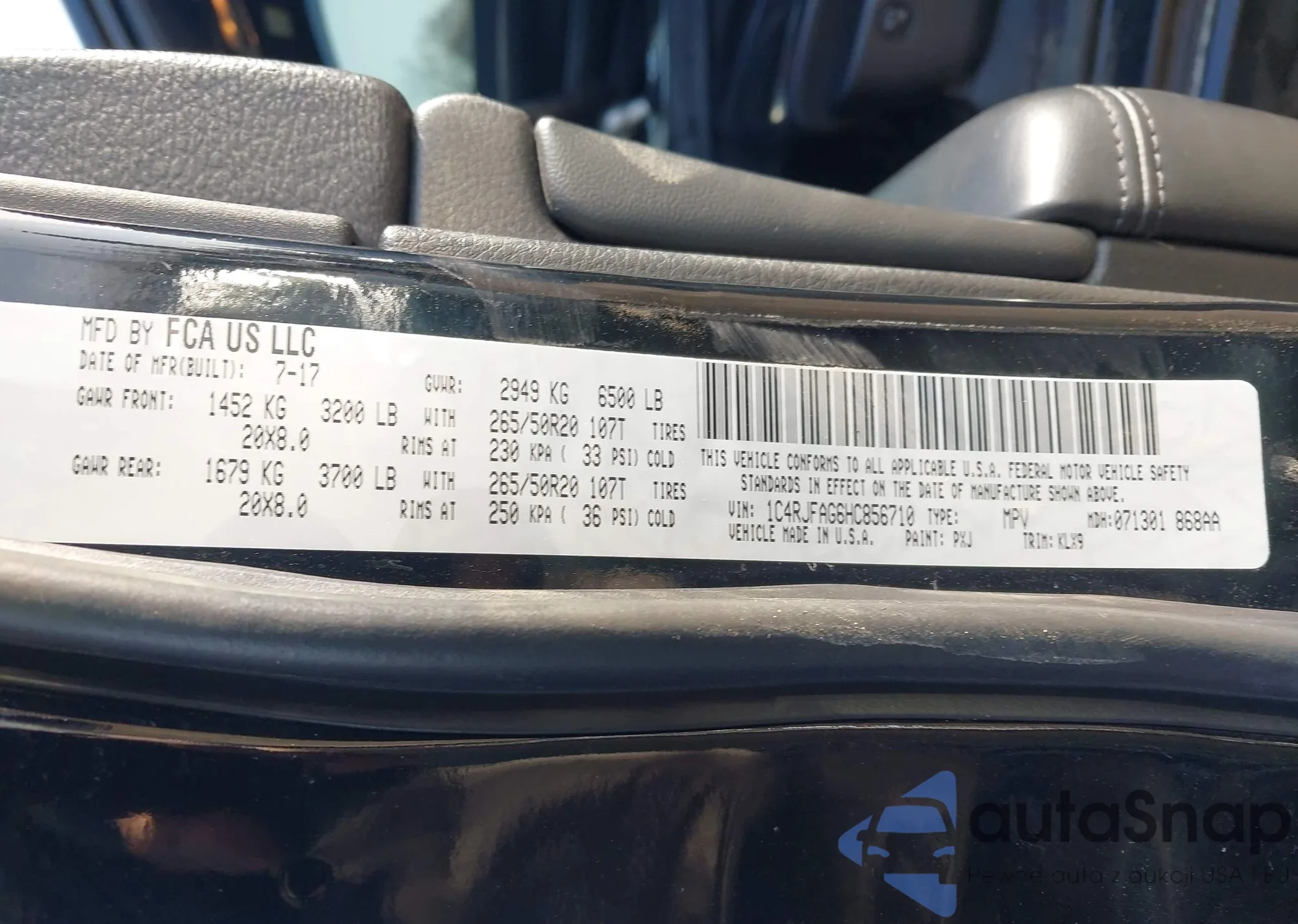 • VIN 1C4RJFAG6HC856710