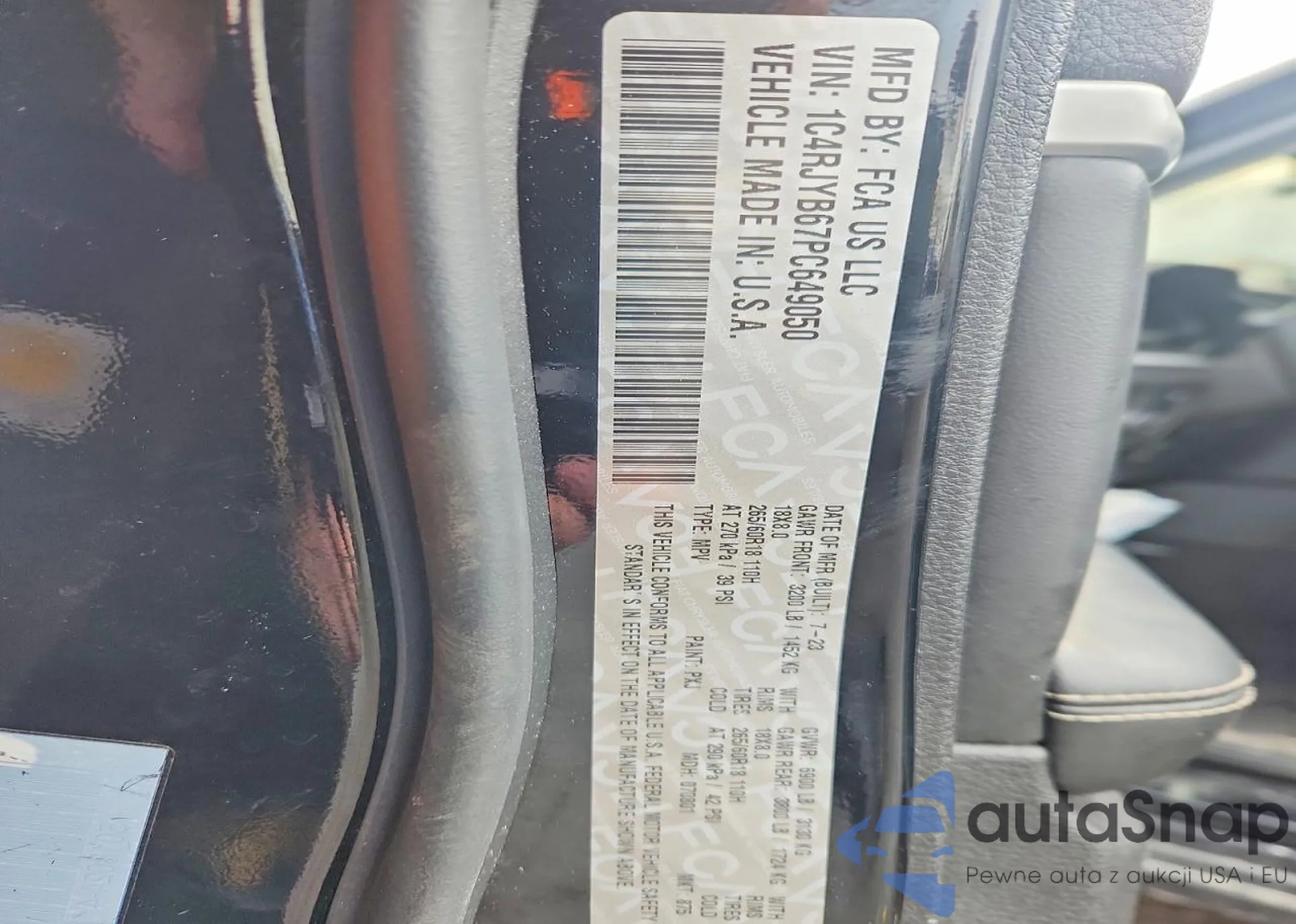 • VIN 1C4RJYB67PC649050