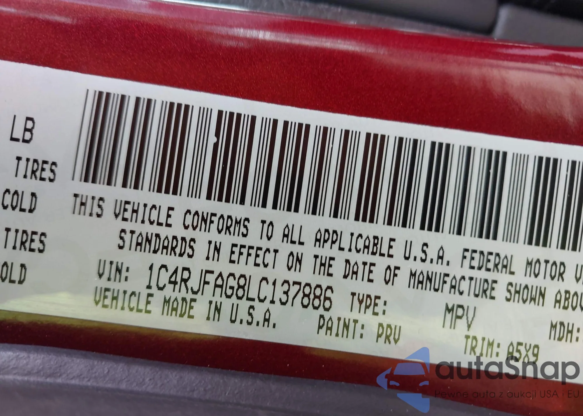 • VIN 1C4RJFAG8LC137886