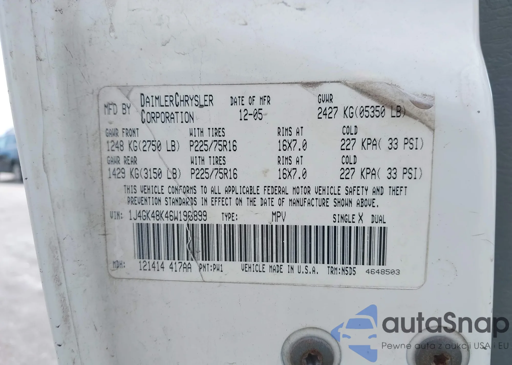 LOT: 79406175 VIN: 1J4GL58K06W286232