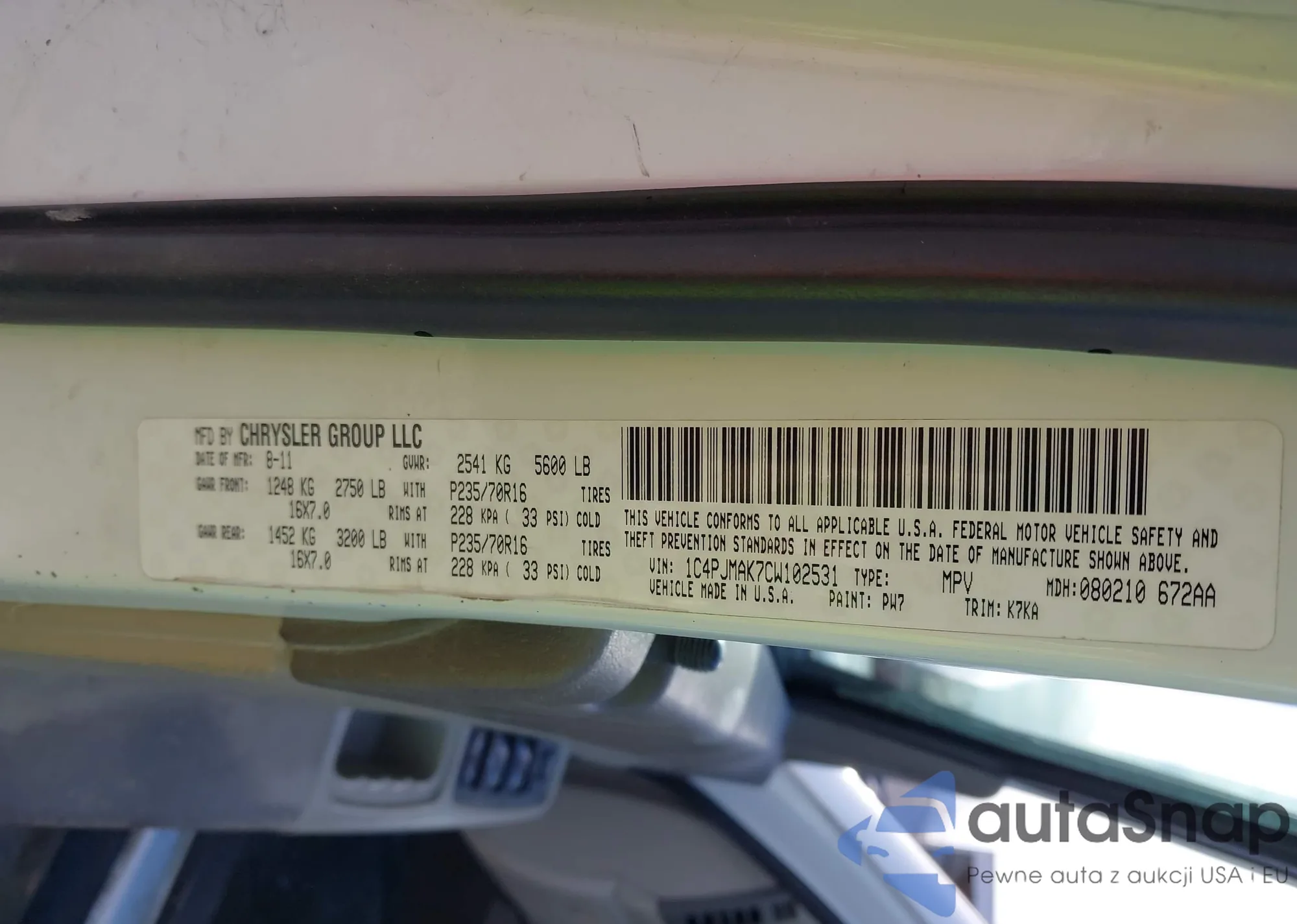 • VIN 1C4PJMAK7CW102531