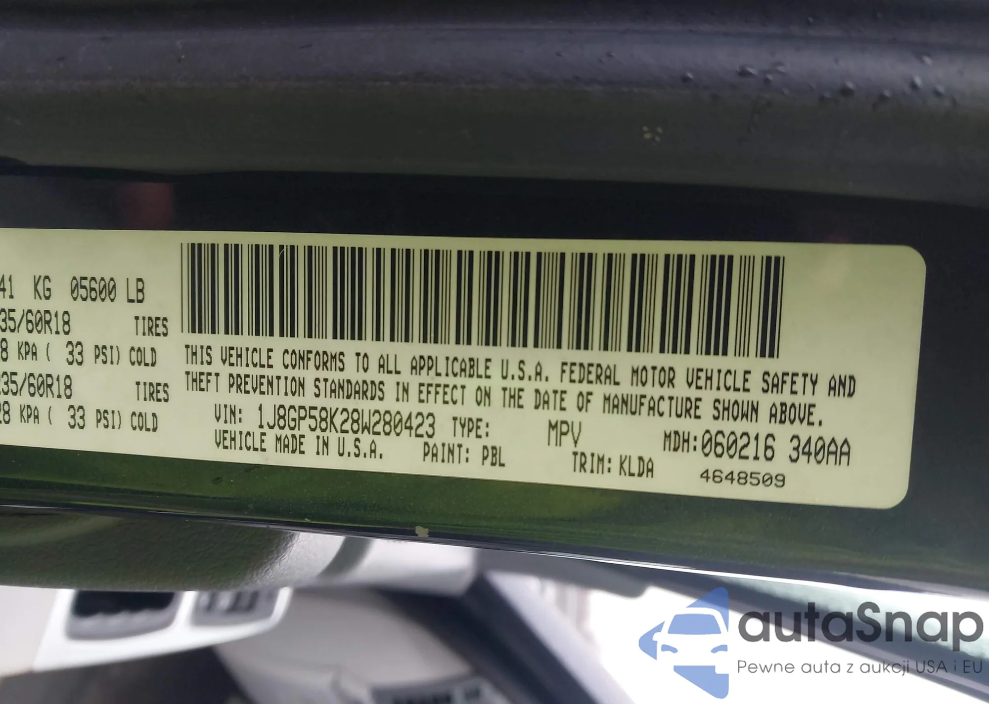• VIN 1J8GP58K28W280423