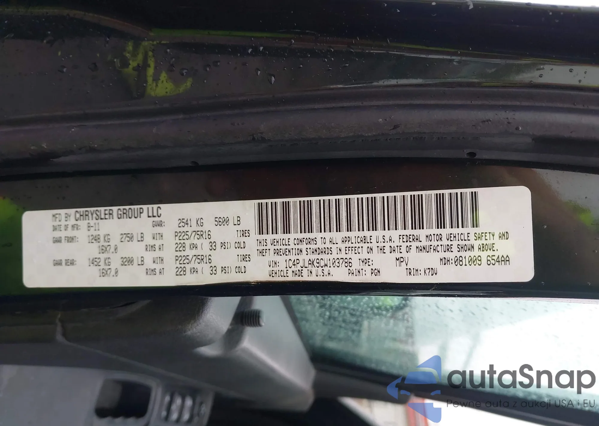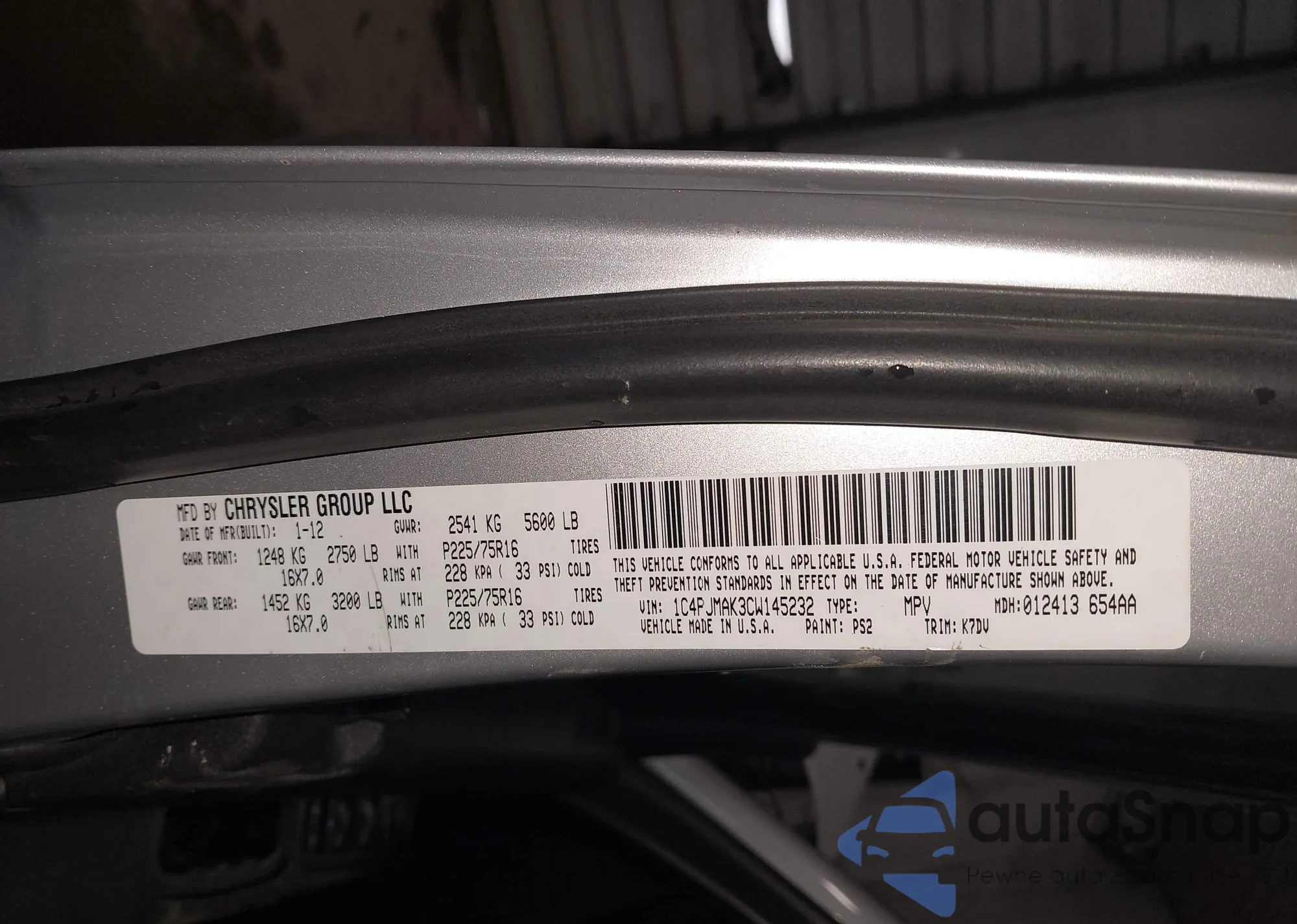 LOT: 43448136 VIN: 1C4PJMAK7CW137795