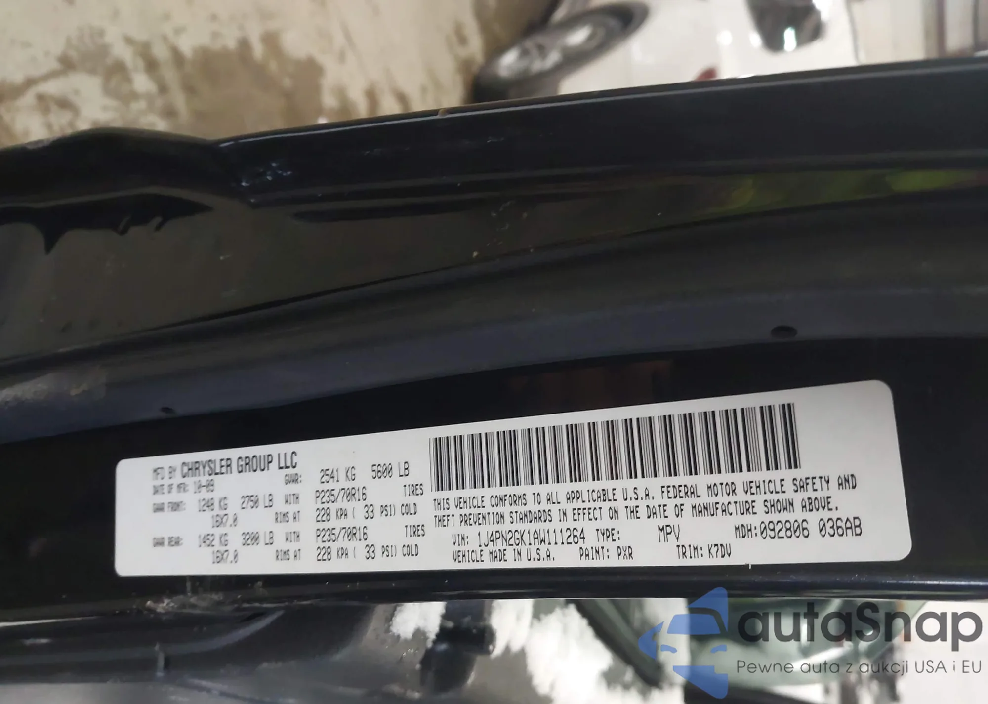 • VIN 1C4PJLAK7CW179569
