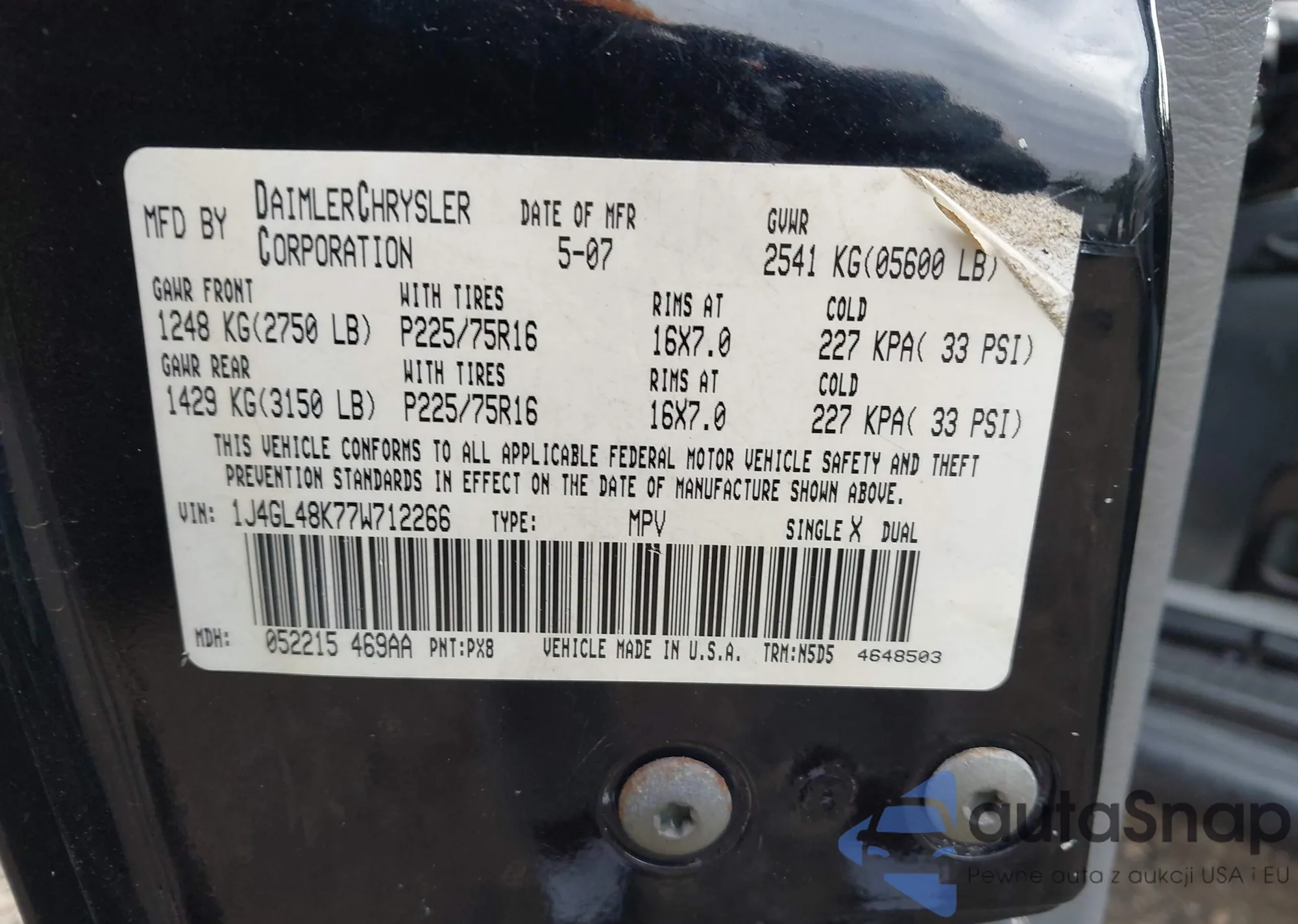 • VIN 1J4GL48K77W712266