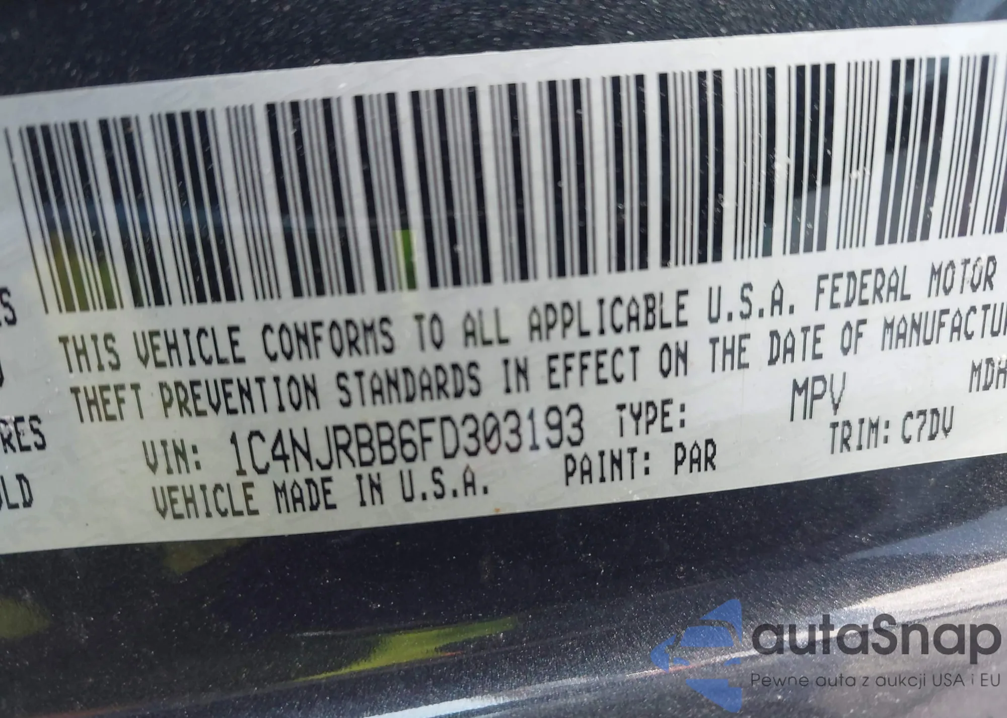 • VIN 1C4NJRBB6FD303193