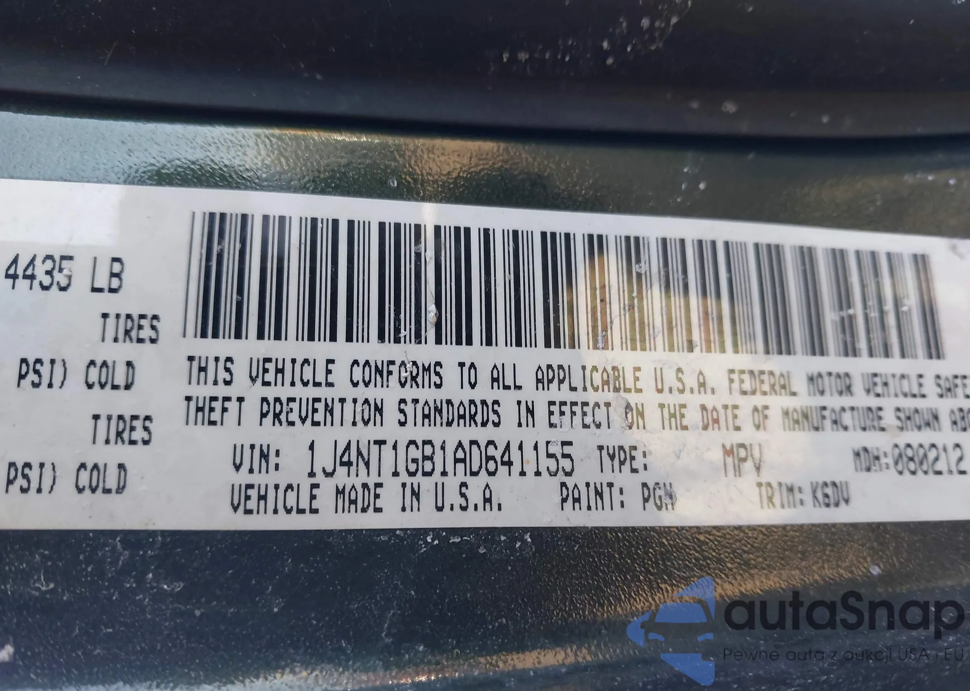 LOT: 44501974 VIN: 1J4NT1GB1AD641155