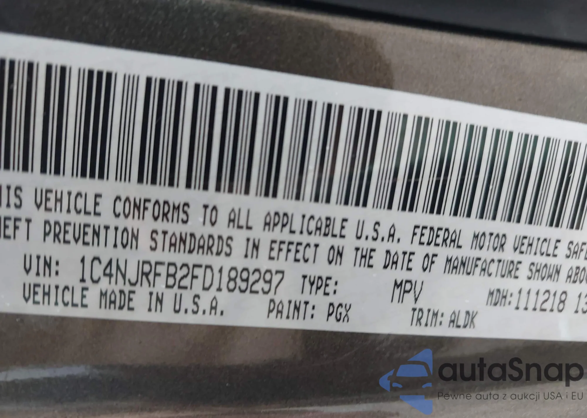 • VIN 1C4NJRFB2FD189297