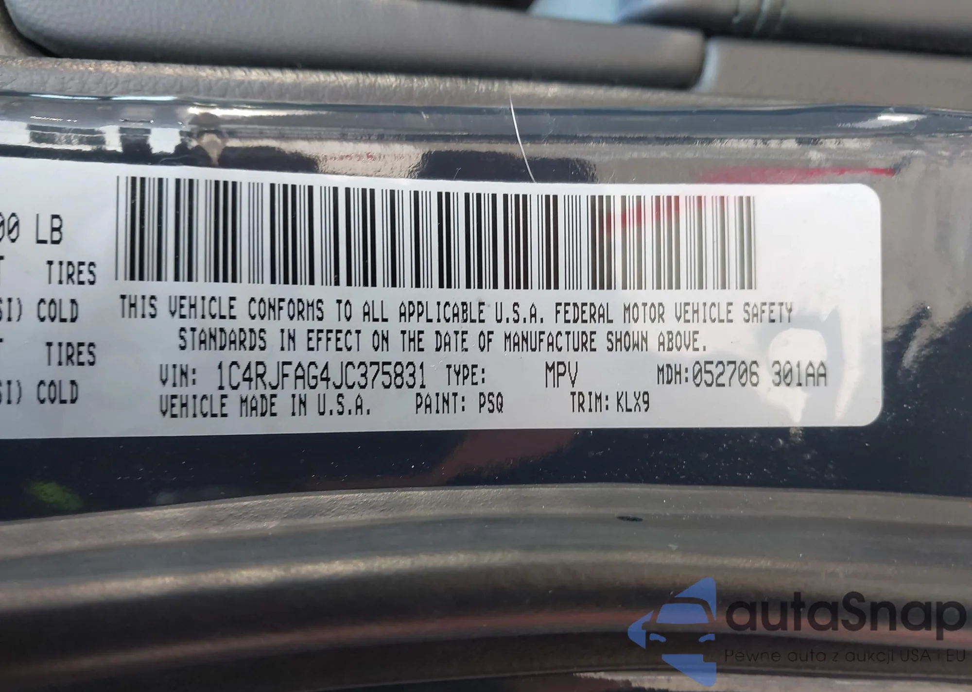 • VIN 1C4RJFAG4JC375831
