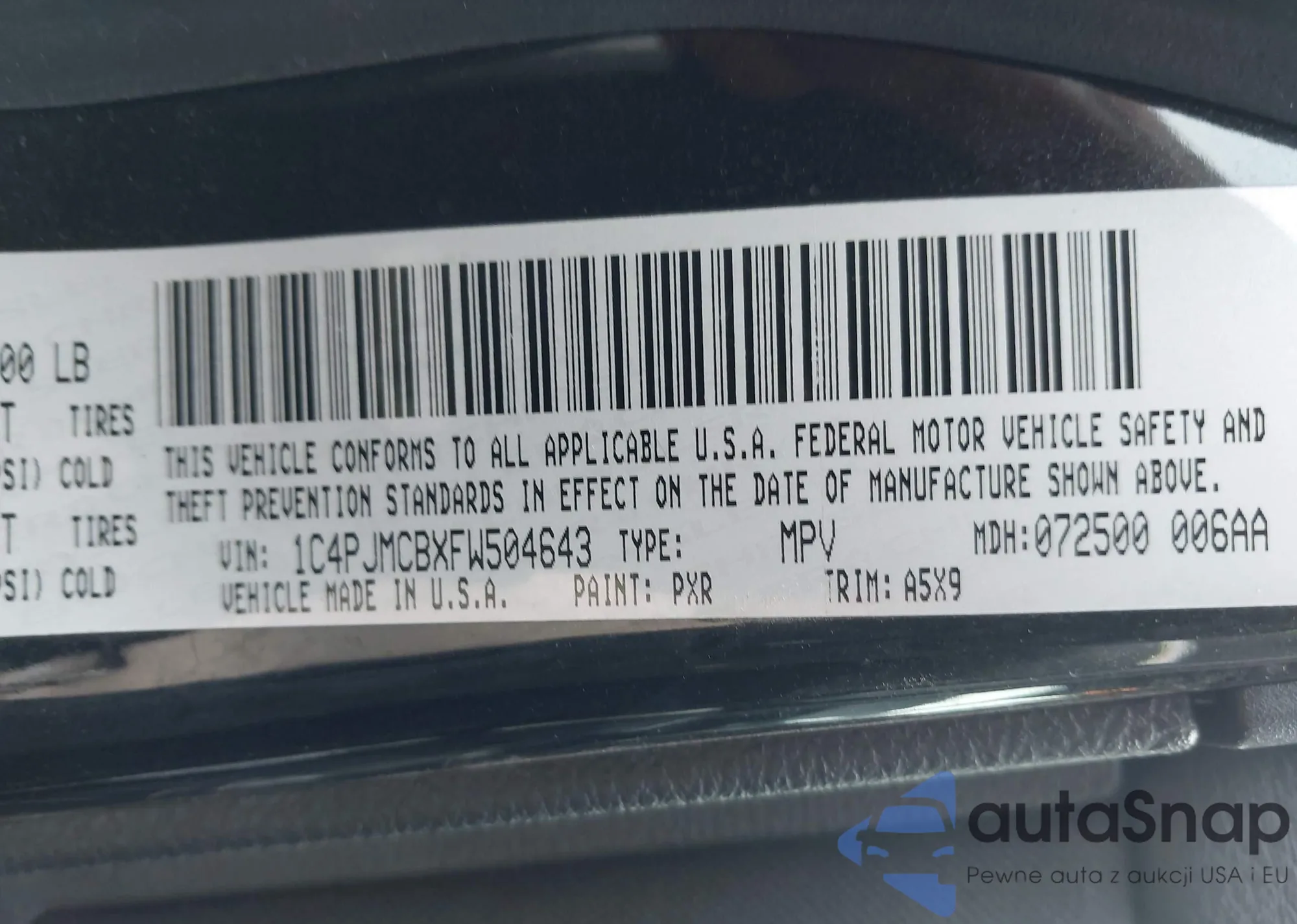 LOT: 44367235 VIN: 1C4PJMCBXFW504643