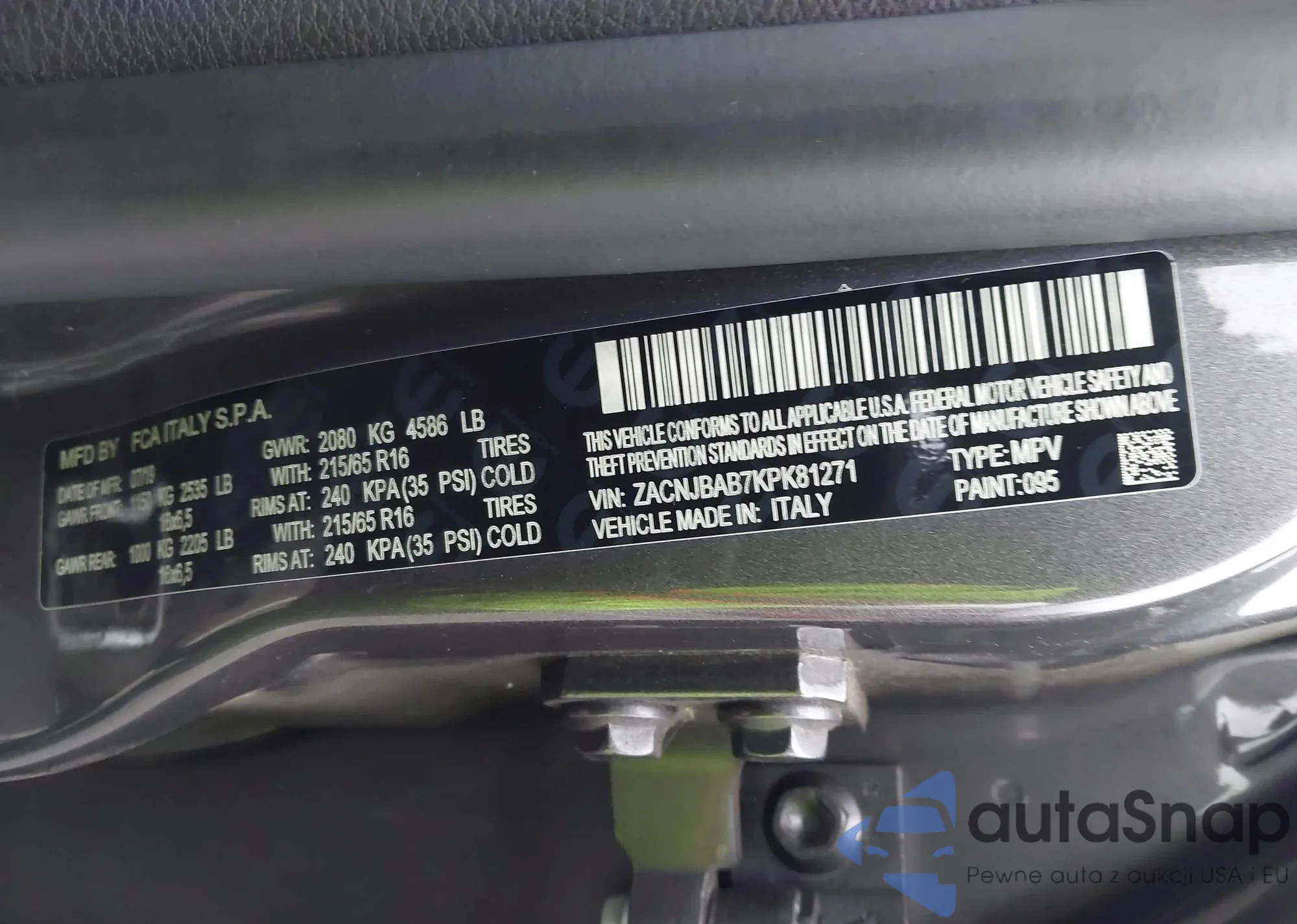 LOT: 43719389 VIN: ZACNJBAB7KPK81271