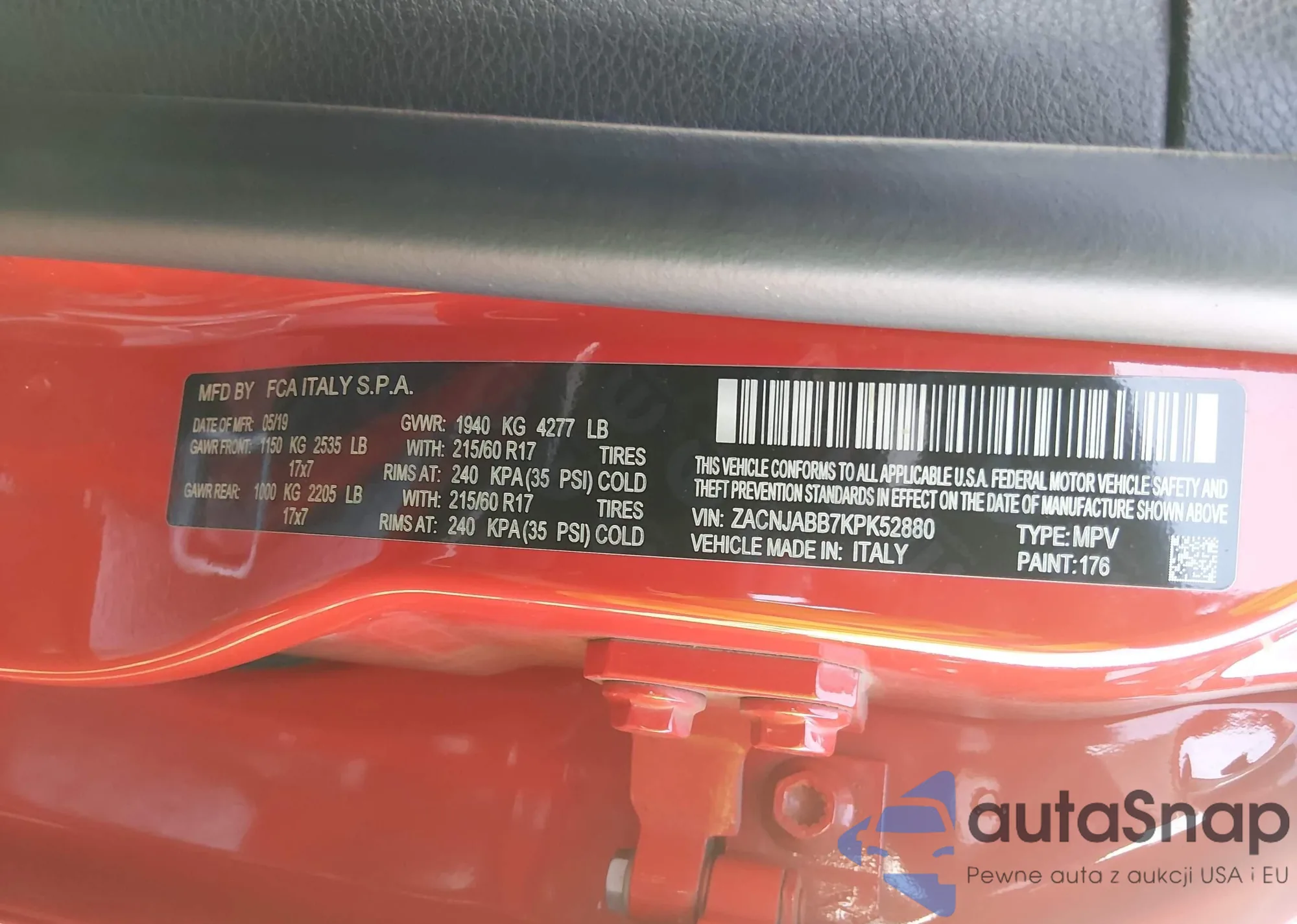 • VIN ZACNJABB7KPK52880