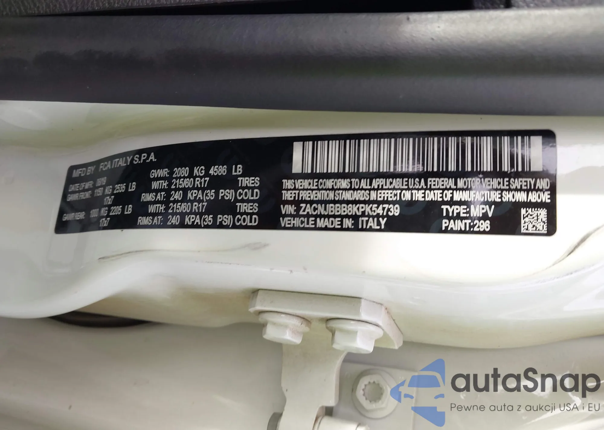 • VIN ZACNJBBB8KPK54739