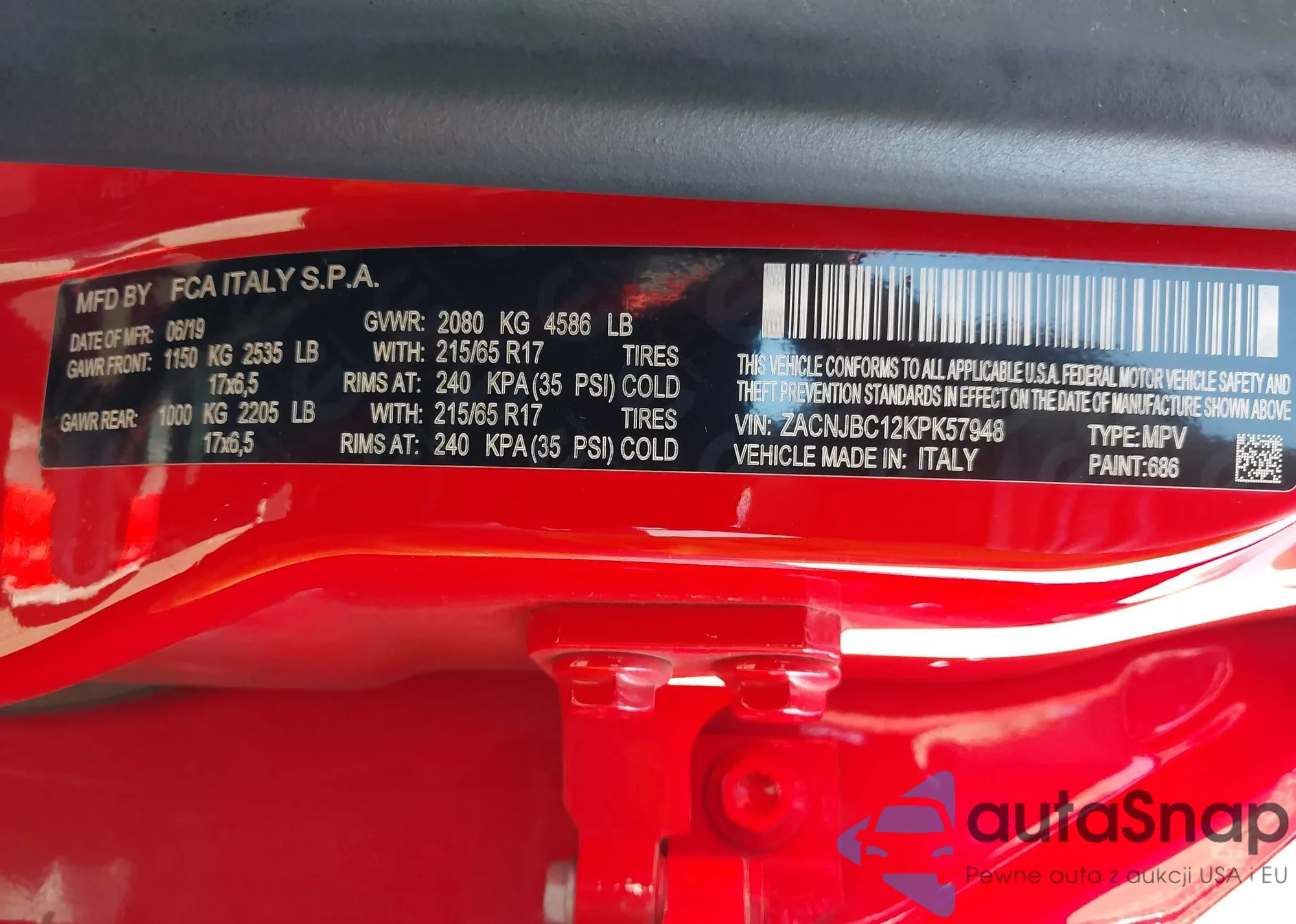 LOT: 44305266 VIN: ZACNJBC12KPK57948