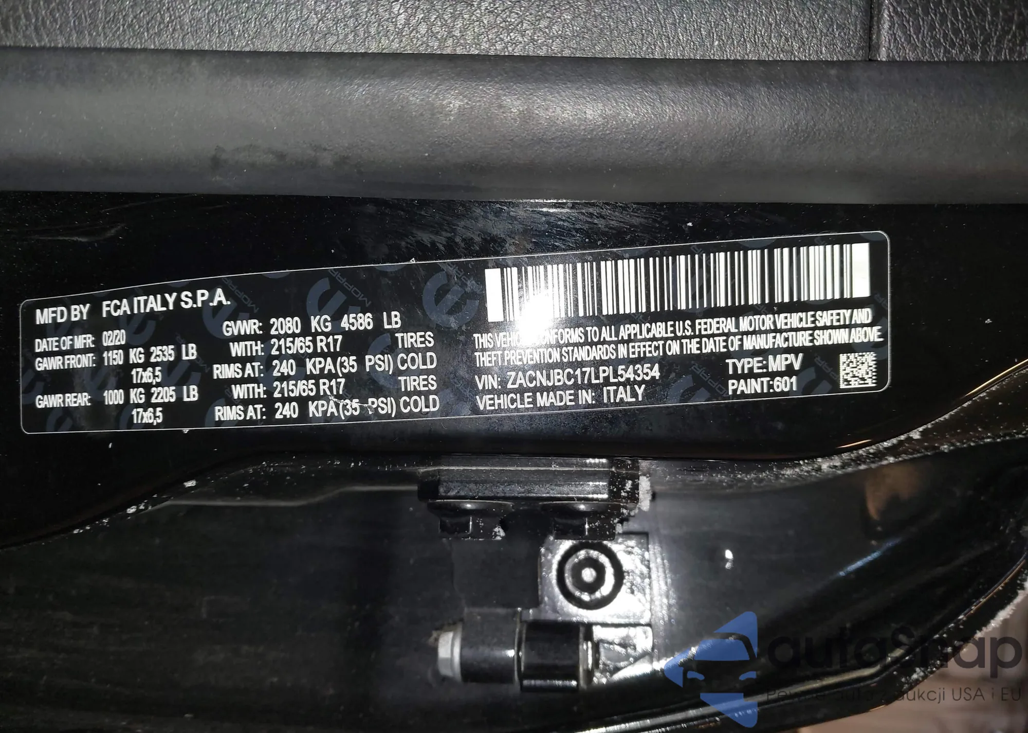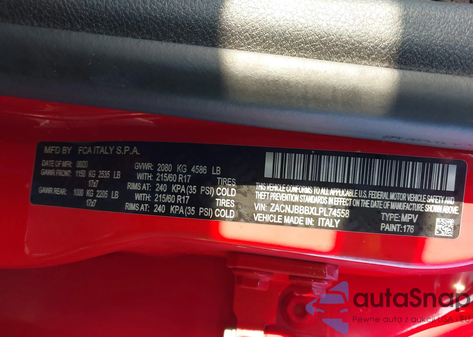 LOT: 44265754 VIN: ZACNJBC17LPL54354