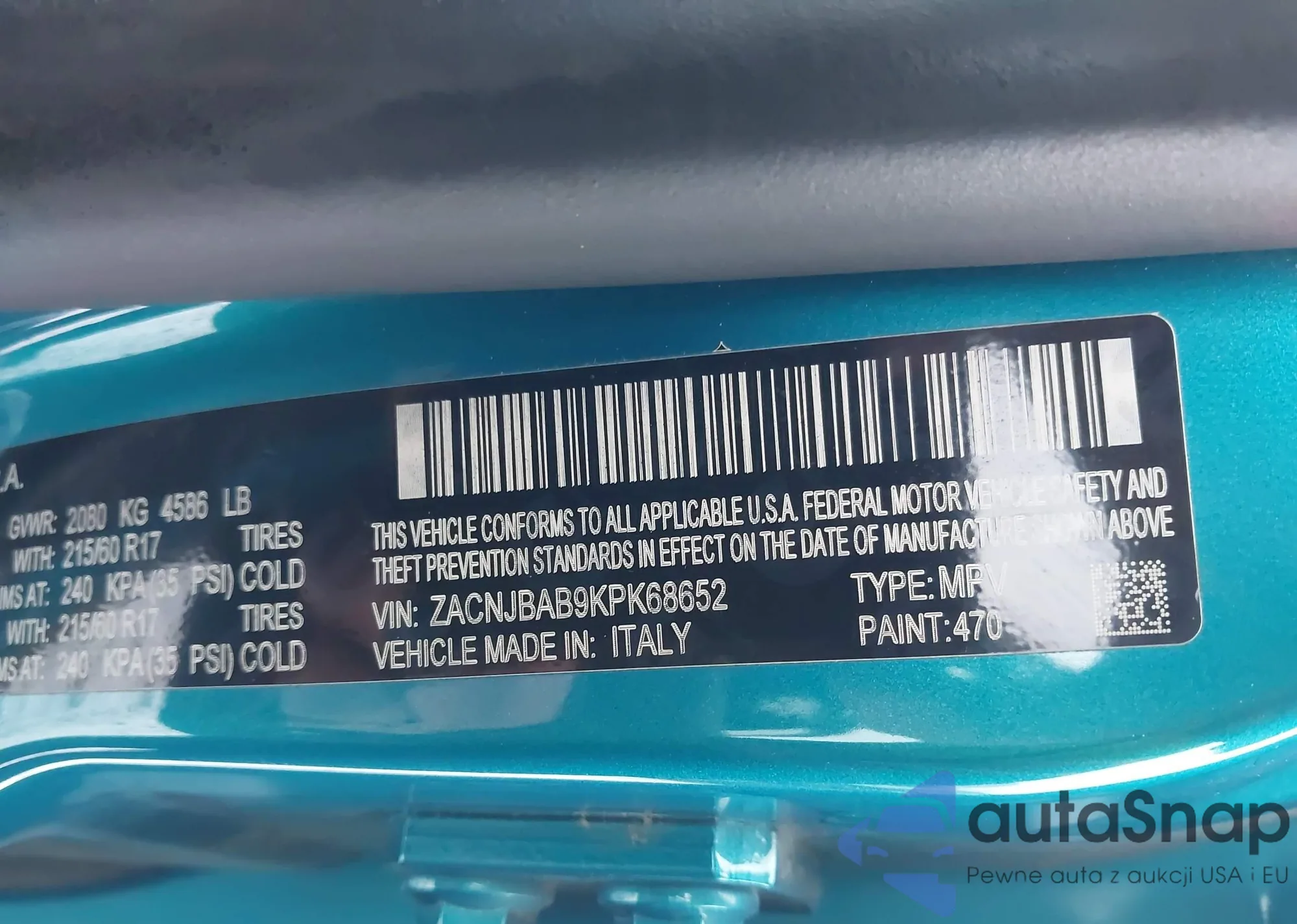 • VIN ZACNJBAB9KPK68652
