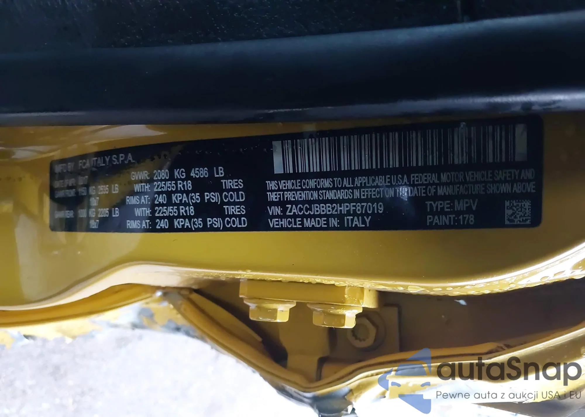 LOT: 44015557 VIN: ZACCJBBB2HPF87019