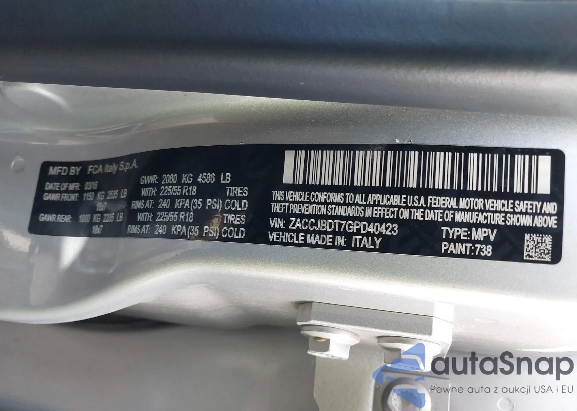 LOT: 44293733 VIN: ZACCJAATXGPE22001