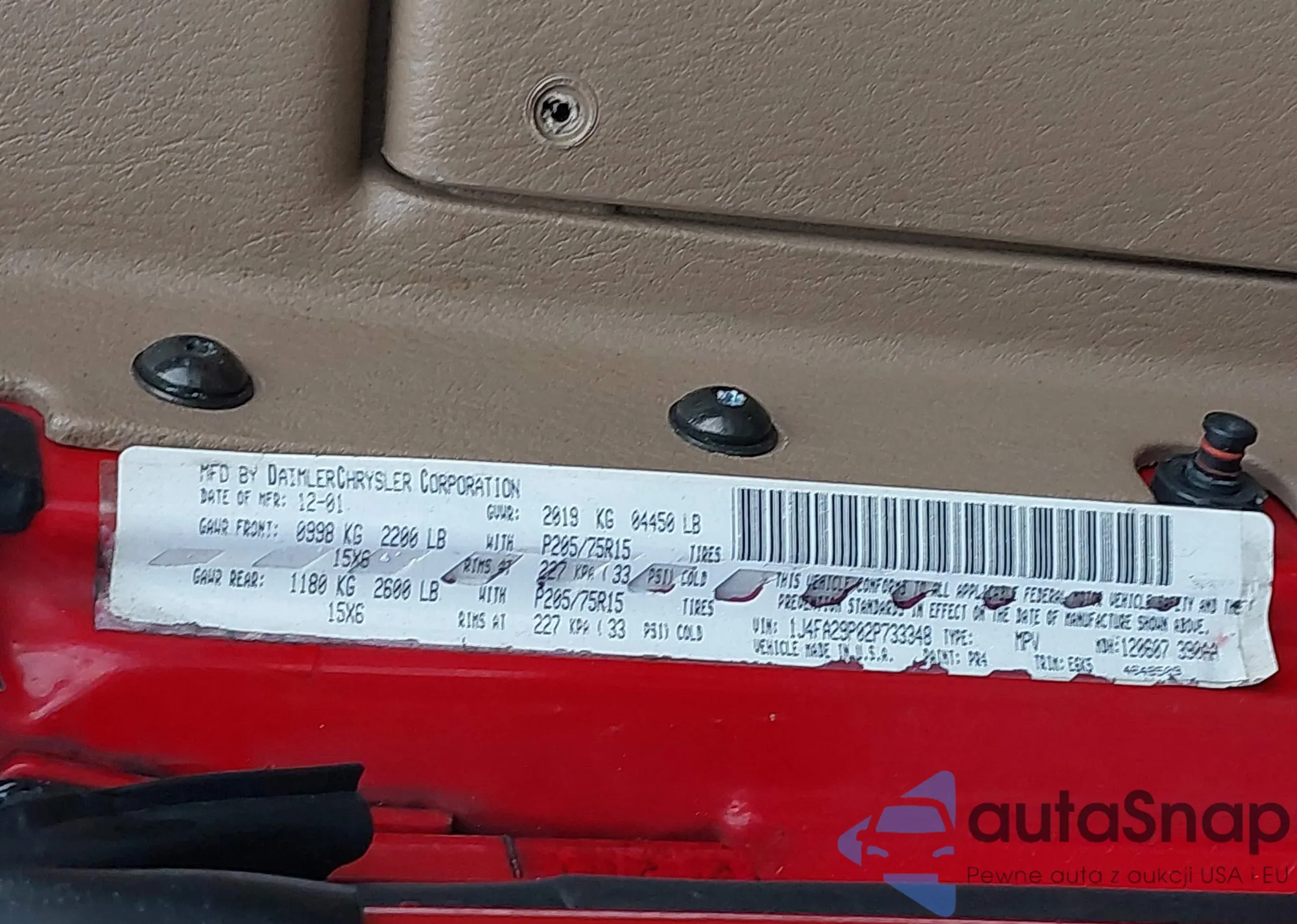 • VIN 1J4FA29P61P375154