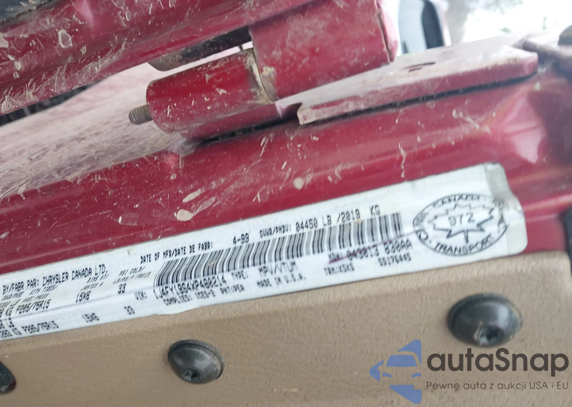LOT: 44220058 VIN: 1J4FY19S4XP480214