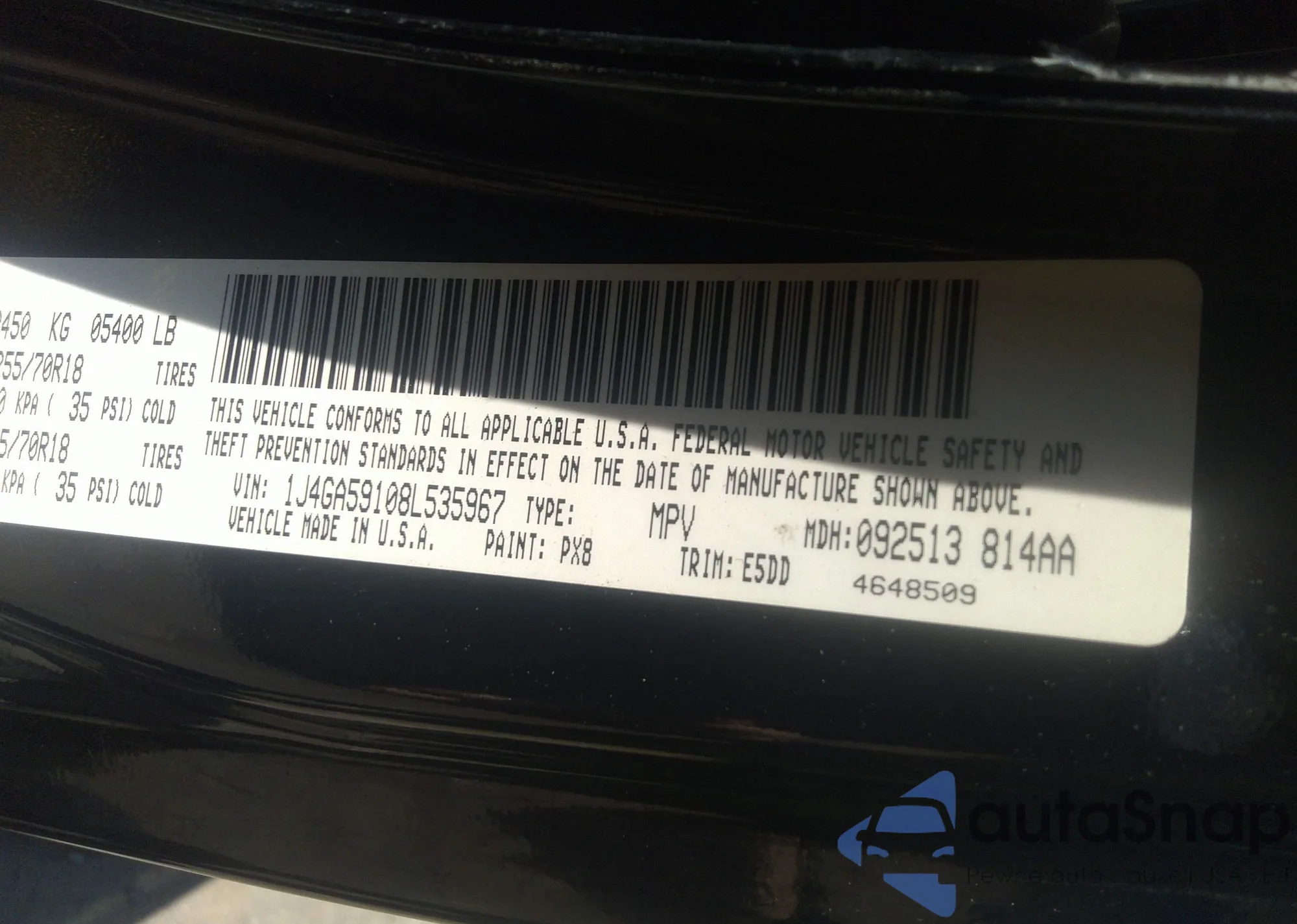 • VIN 1J4GA59108L535967