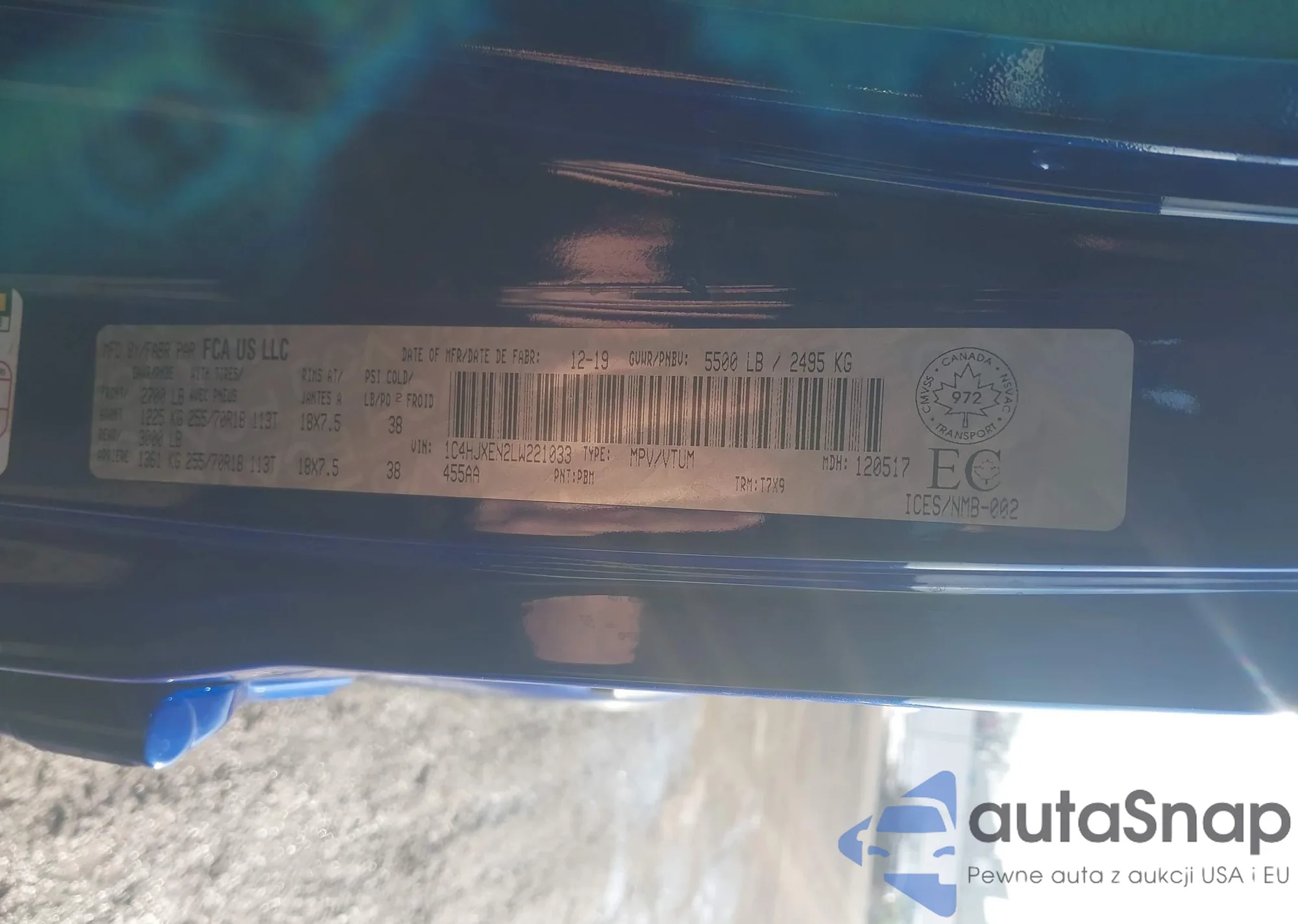 • VIN 1C4HJXEN2LW221033
