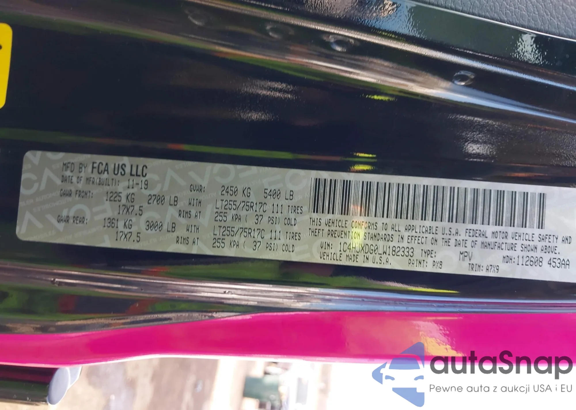 • VIN 1C4HJXDG0LW182333