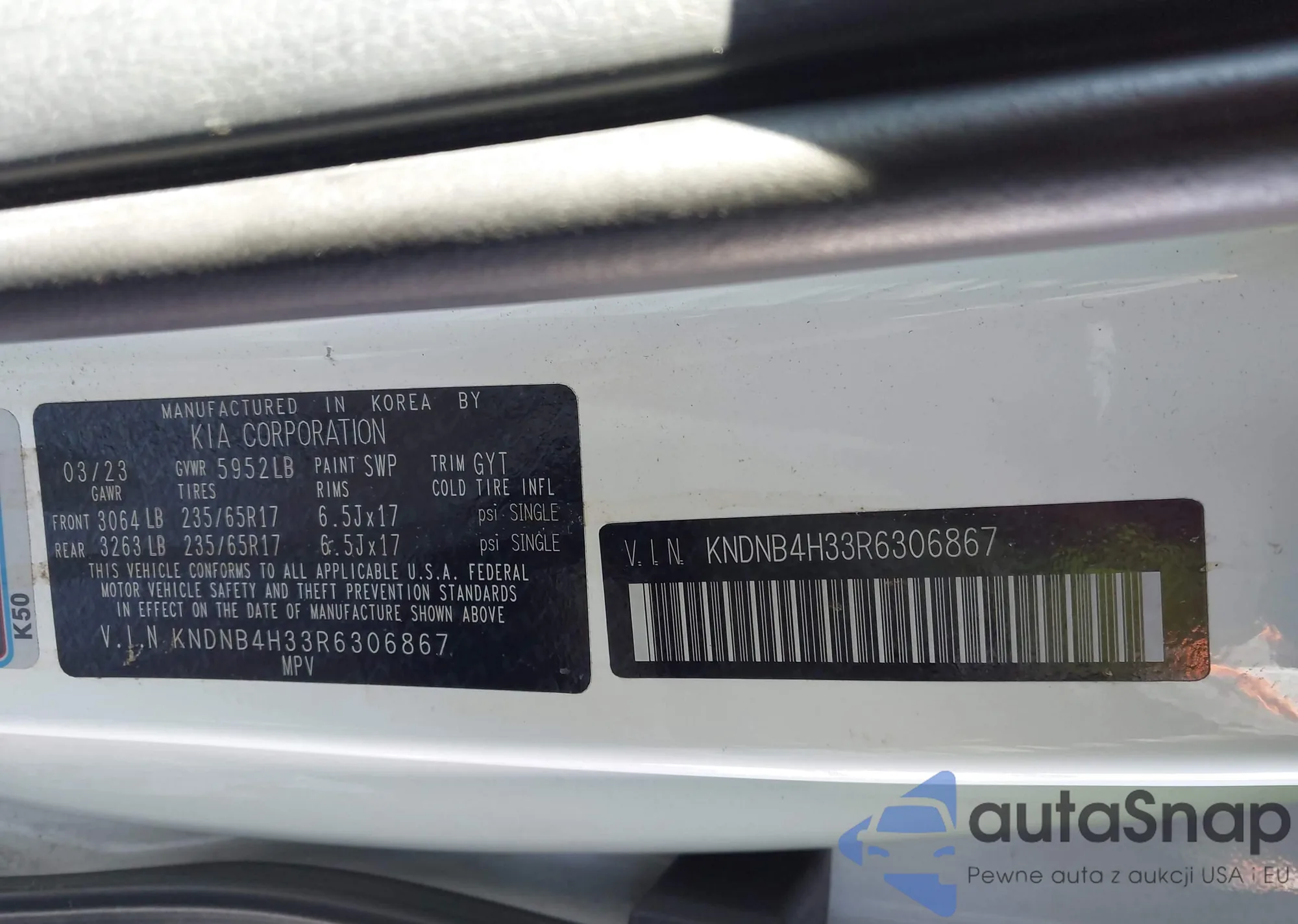 • VIN KNDNB4H33R6306867