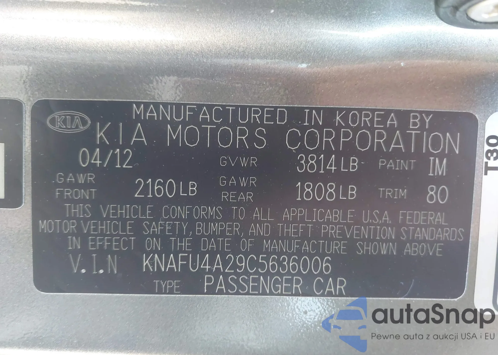 • VIN KNAFU4A29C5636006