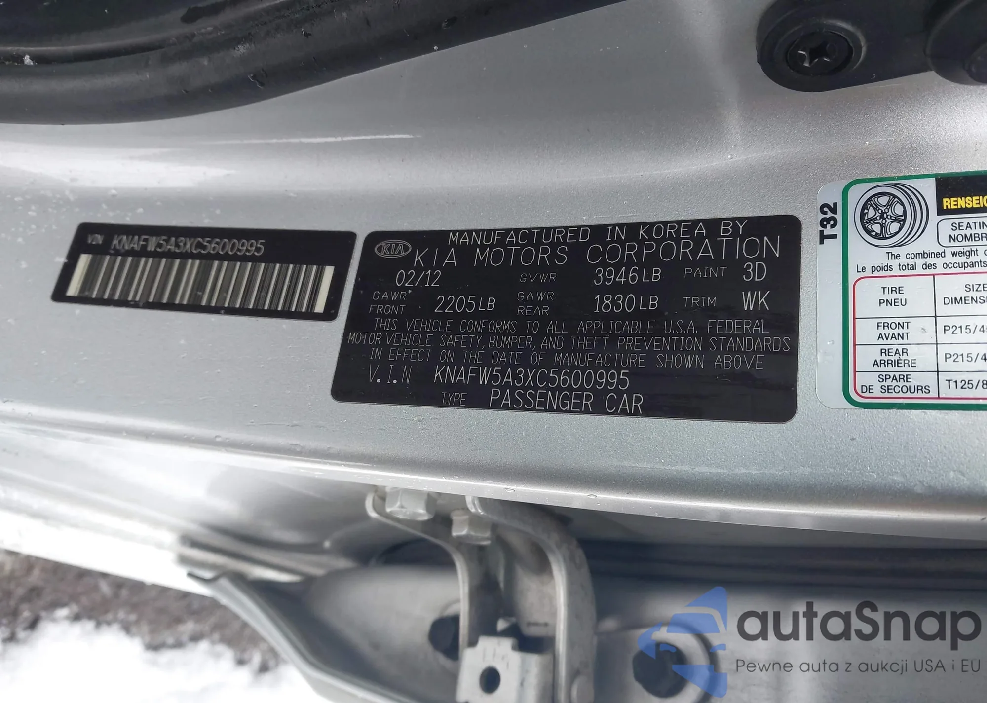 LOT: 44600859 VIN: KNAFW5A3XC5600995