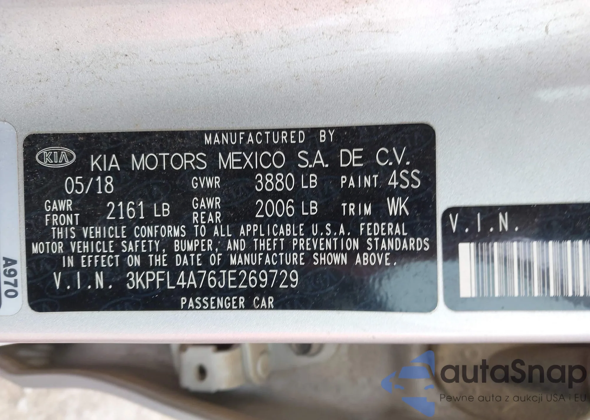 LOT: 44159372 VIN: 3KPFL4A76JE269729