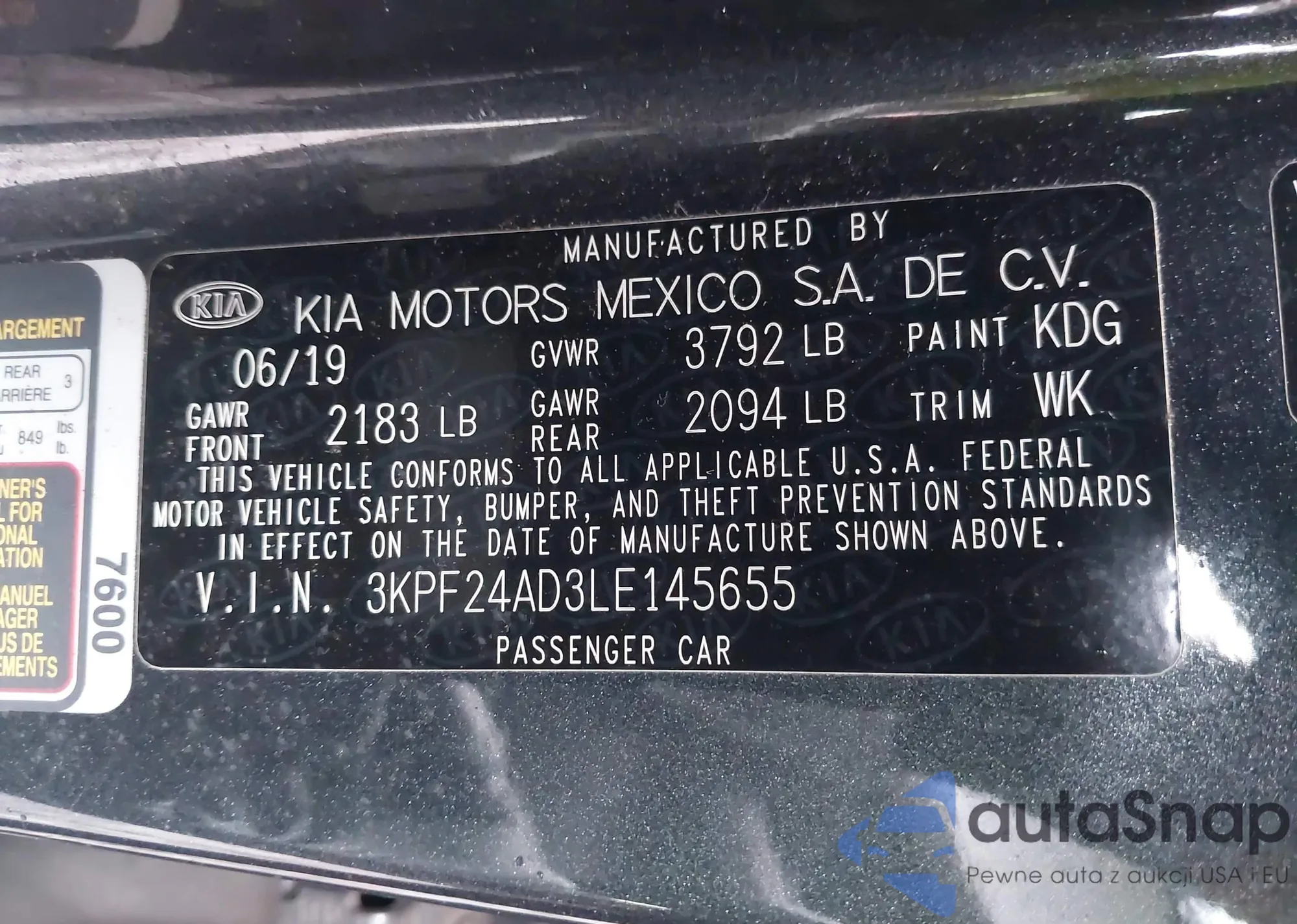 • VIN 3KPF24AD3LE145655